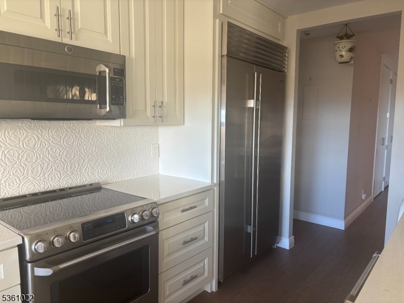 Step into luxury in this beautifully renovated apartment, perched on the ninth floor with sweeping views of the Manhattan skyline. Completely renovated , this spacious residence combines modern elegance with high-end finishes throughout. Gleaming new hardwood floors flow seamlessly through the home, creating a warm and inviting atmosphere. The chef's kitchen is a true showstopper, featuring premium stainless steel appliances, a sub-zero refrigerator sleek countertops, and custom cabinetry that offers both beauty and functionality. Two beautifully appointed bathrooms each include stylish walk-in showers and are finished with exquisite tile work, providing a spa-like experience. The second bedroom offers remarkable versatility, featuring a wall of custom cabinets, ideal for guests, office, or a private sanctuary. The thoughtful updates, refined details, and breathtaking views, this apartment is truly a rare find ready to welcome you home. Enjoy 24 hour concierge service, heated Olympic size pool, tennis courts, 7 cup putting green, picturesque picnic area with BBQ stations, state of the art fitness center ,library and card and party rooms. Only minutes from Montclair with fine dining, shops and museum. Monthly maintenance fee covers all utilities.