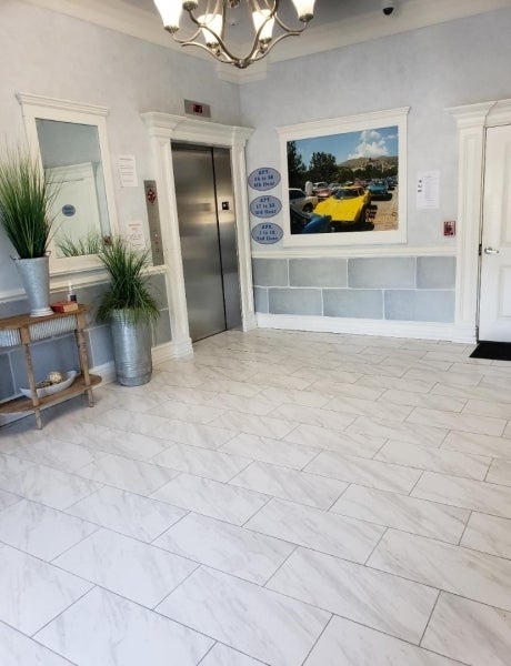 Exceptional Over Sized LUXURY RENTAL In active adult 55+ Building in serene location! Enjoy Open Floor Plan of 1,370 sq. ft of one floor living in 6-year young elevator building. Gourmet kitchen with breakfast bar. Granite counters & stainless-steel appliances SPA-LIKE MASTER BATH w/ Jacuzzi tub & walk in tile stall shower. 2 nd full bath has tile stall shower. Gas fireplace in living room, Terrace off living room to enjoy morning coffee or nightcap. WIK, large laundry rm with full size washer & dryer, & storage cabinet. Nice GYM on 2nd floor, residents lounge off lobby 24/7 for games, chatting, WIFI. Outdoor Patio w/ BBG & gazebo. Lobby entrance to covered garage assigned parking space. Secure mail area and keypads at all doors. Temperature controlled carpeted private storage room on each floor. Cat friendly. NO DOGS. AVAILABLE NOW VACANT!