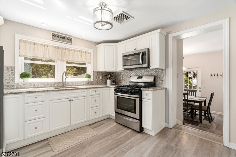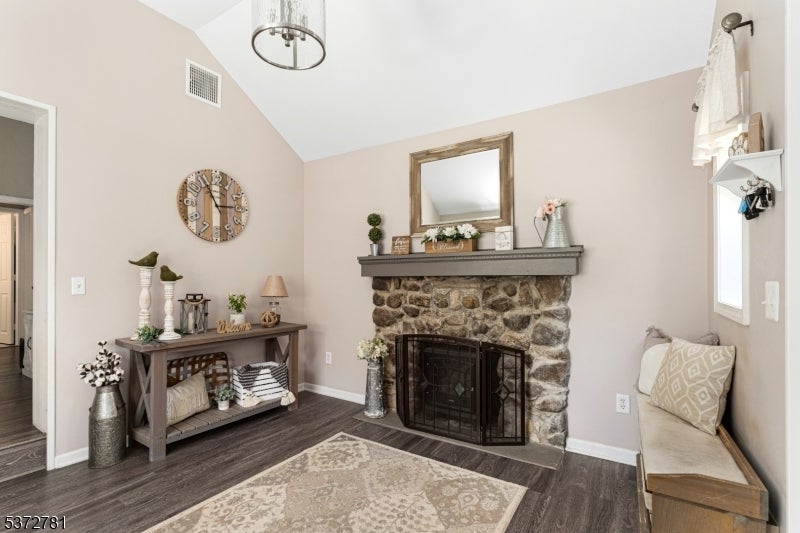 This picture-perfect Vernon cottage looks like it jumped out of a magazine. With its adorable curb appeal, window boxes, flower pots, and fully fenced yard, it's got all the storybook charm from the start. Inside, you'll find warmth and character in every room. The foyer/sitting room welcomes you with a cozy stone fireplace and mantle with an electric insert. The vaulted ceiling and stained-glass window in the living room add that airy, open feel. There are 3 bedrooms, the master having a half bath, provides enough space for everyone. The kitchen is a dream - granite counters, gas stove, stainless appliances, and tons of cabinet space. A separate dining area offers room to gather and entertain. Extras include new central air (2024),and a massive 2 car garage. The backyard is ready for relaxing or entertaining with a stamped concrete patio, fire pit, and lush landscaping and backs up to state land! This home is big on charm, full of thoughtful updates, and even better in person. This adorable home blends comfort, style, and practicality in a peaceful setting just minutes from local lakes, parks, and charming Sussex County towns.