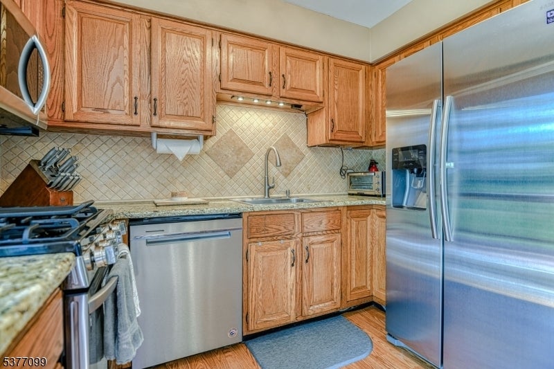 Charming 2-Bedroom Townhome with Finished Basement and Garage: Welcome to this beautifully maintained two-story townhome featuring 2 bedrooms, 1.5 bathrooms, and a finished basement, perfect for added living space or a home office. The first floor offers an open-concept layout with a spacious living room and an eat-in kitchen, complete with granite countertops, stainless steel appliances, and updated laminate flooring throughout. Sliding glass doors in the kitchen lead out to a private backyard with a deck, ideal for entertaining or relaxing outdoors. Upstairs, you'll find two comfortable bedrooms and a full bathroom. The finished basement includes a dedicated laundry area and additional versatile space to fit your needs. Additional highlights include a 1-car garage and access to fantastic community amenities, including a pool, playground, tennis courts, and basketball courts. This home combines comfort, style, and convenience in a desirable location.