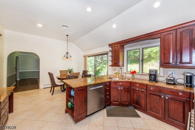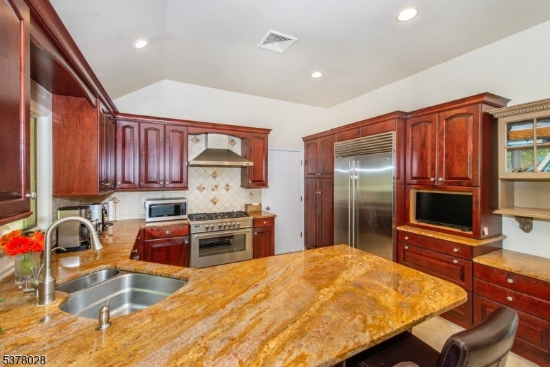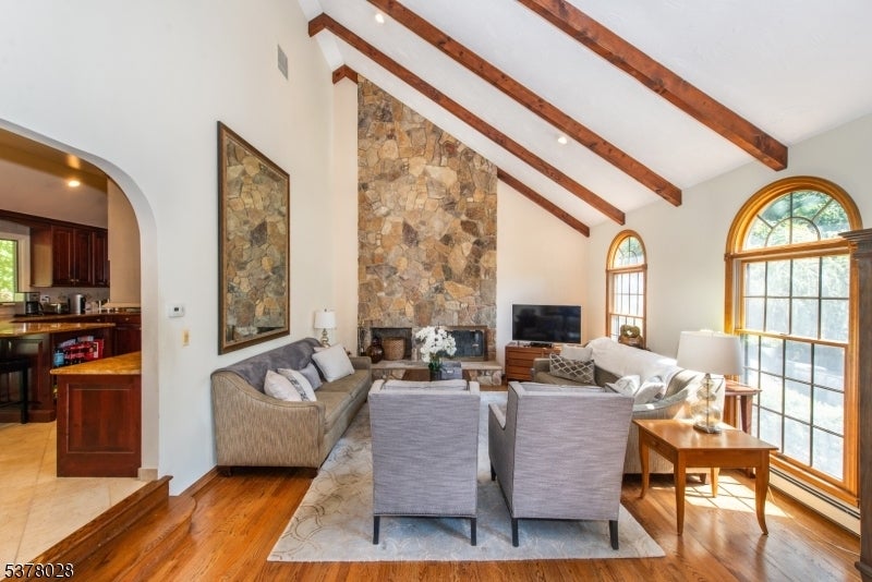 Beautiful, custom 4 bedroom plus Office, 3.5 bath colonial split-style home on an acre on a cul-de-sac in the desirable Lake Valhalla area of Montville. Large living room with cathedral wood-beamed ceiling, floor to ceiling stone fireplace. The eat-in kitchen features a Sub-Zero refrigerator, newer oven and dishwasher, granite countertops, built-in desk area and pantry, lots of cabinet storage. Both the kitchen and dining room have sliding doors onto the stone backyard patio. Upstairs are 3 bedrooms, all with large windows to take advantage of the views, including a primary bedroom with both a shower and Jacuzzi tub. Remodeled hall bathroom. A few steps up from the bedrooms is a sunny loft with skylight overlooking the living room. Downstairs from the foyer is a roomy, bright family room with an outside entrance to the large fenced-in side yard. This level also features a bedroom, office and full bathroom. Fully finished basement with laundry room provides more room for recreational activities, exercise equipment, etc.! Off the basement is a door to a workroom/storage space with another door up steps into the 2-car garage. both the driveway and patio are lighted. This home has lots of character and is perfect for anyone looking for privacy and peace and quiet. Added comfort and security with a whole-house generator.PRICE REDUCE TO ACCELERATE SALE