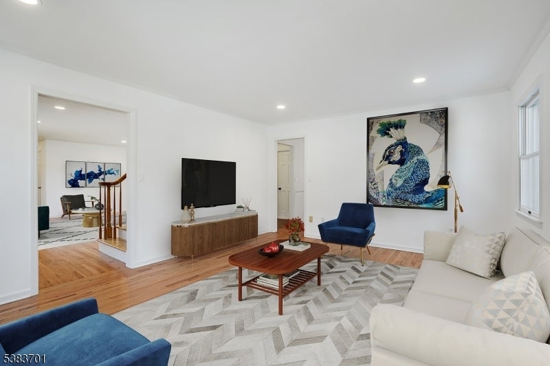 Renovated spacious 4 bedroom, 2.5 bath bright colonial located close to town, NYC commuter trains and top-rated schools on over half an acre. First floor features a large family room, updated eat-in white kitchen with Quartz countertops & stainless steel appliances, first floor laundry, sliders to deck and backyard. Formal dining room, living room, powder room & redone hardwood floors complete this level. The second level offers 4 bedrooms and 2 fully renovated baths and newer hardwood floors. Primary bedroom has ample closet storage and newer en-suite primary bathroom. The basement includes a large recreation room and storage. Outside a spacious deck overlooks private, gorgeous flat yard. Add. features: Attached garage, central air, newer lighting.