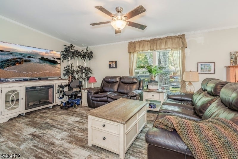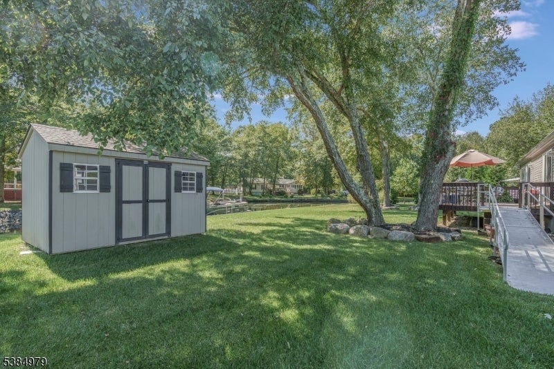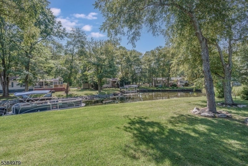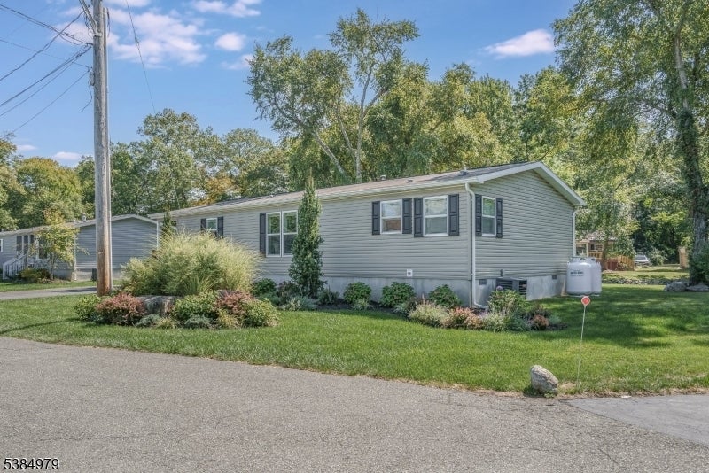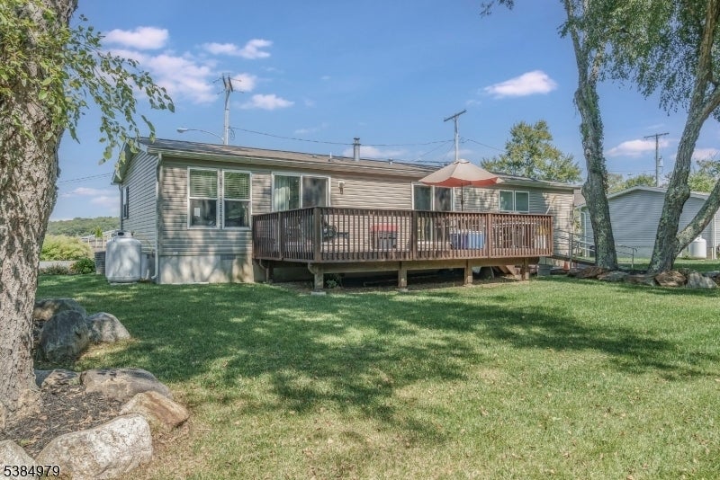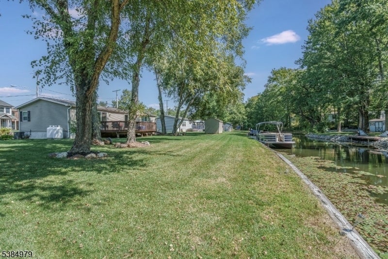 Turn Key-Main Level Lakefront Living - Title Ownership - Land Lease - Lakefront Setting - Central Air-Living Room-Kitchen with large pantry -Two Bedrooms - Two Full Bathrooms- Front Porch - Large Rear Deck - 2012 Pontoon Boat Included - Level Yard - Propane Gas - Shed - Public Water - Snow Removal - Garbage Included - Residents must be approved by management prior to moving to the lease property. Being Sold As is.
