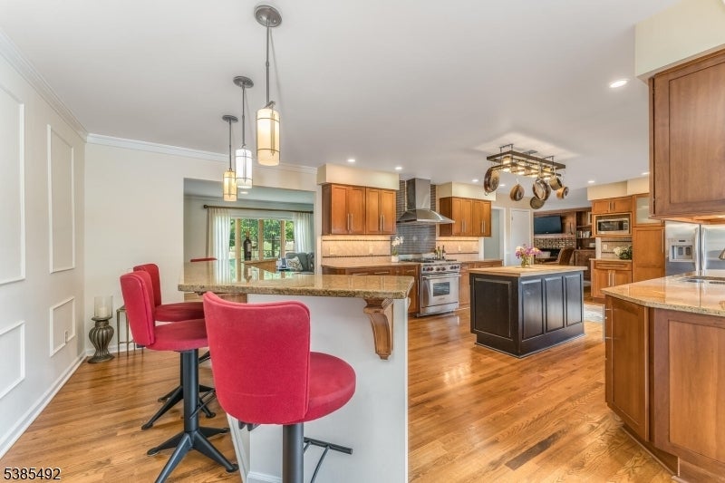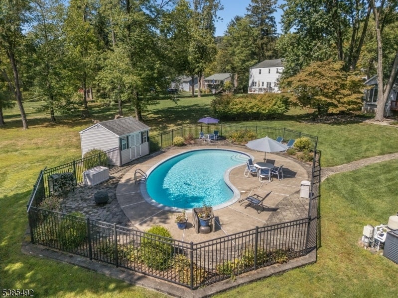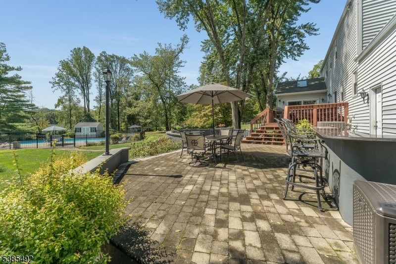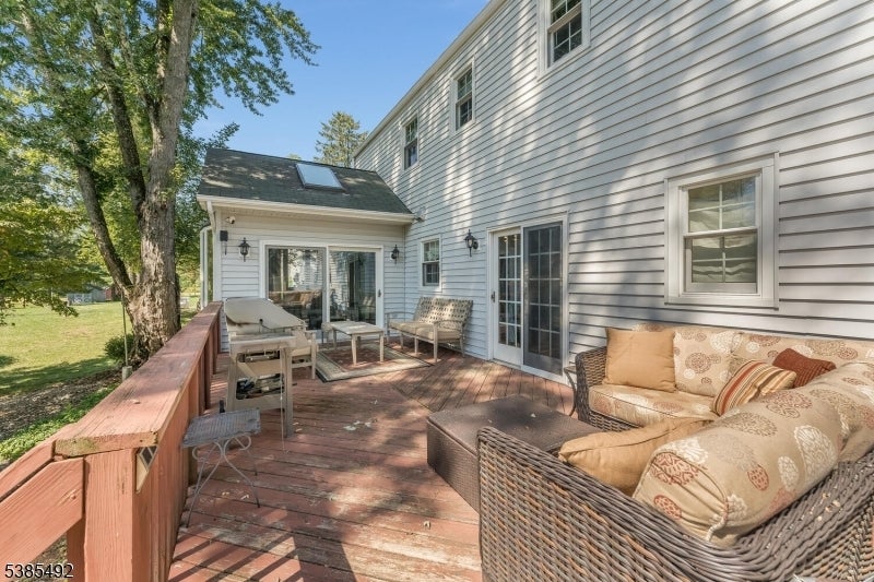 This classic Colonial in the heart of desirable Historic Brookside section of Mendham Township only six miles west of Morristown, and Perfectly positioned on a tree-lined street. This four bedroom, two full baths and powder room. The dining room is graced with a gas fireplace. The Chef's kitchen boasts an open concept, including a Wolf stove/oven, granite countertops with an Island seated breakfast nook, stainless steel appliances, ample custom cabinets, large pantries. Open to the tall, vaulted ceiling sunroom with a wall of sun-drenched windows and skylights that lead outside from the glass doors to the large 23x12 deck. A paver patio and paver walk way to the saltwater in-ground heated gunite pool. More highlights include; Hardwood floors, laundry room on the first level, paved blacktop driveway, attached two car garage, covered portico entrance, public water and gas, finished basement and storage. Country living yet minutes from shops, schools, restaurants, and Patriots Path hiking trail, and blocks from Brookside Beach.