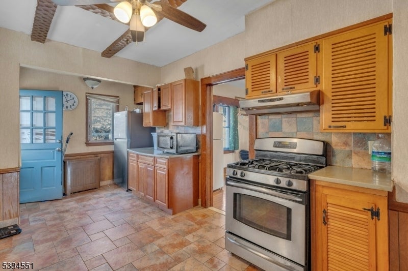 Move-in ready 3BR/1BA Colonial. Features include open front porch, a spacious living room with original craftsman woodwork and built-in cabinetry, formal dining room, and eat-in kitchen with stainless steel appliances, tile flooring, and wood beams. The second floor features three bedrooms and a full bathroom. Finished walk-up attic provides additional storage or home office space. Finished basement with recreation/media room, storage, and washer/dryer. Hardwood floors throughout. Recent upgrades: newer furnace, hot water heater, and roof. Fully fenced backyard with a shed. Conveniently located near schools, shopping, major highways, and NYC transportation. Home sold as-is.