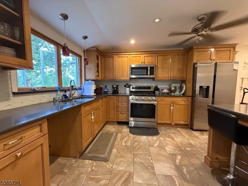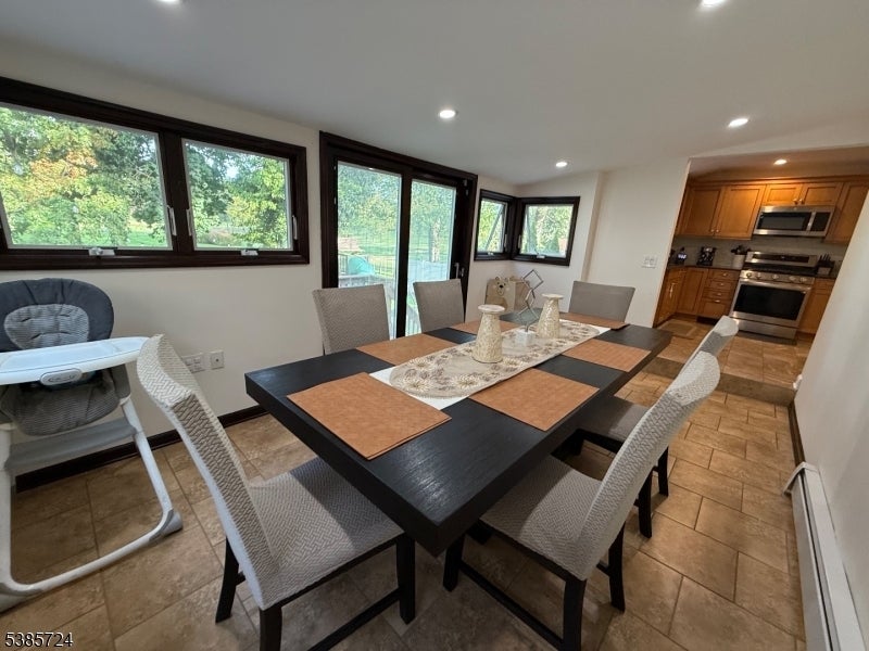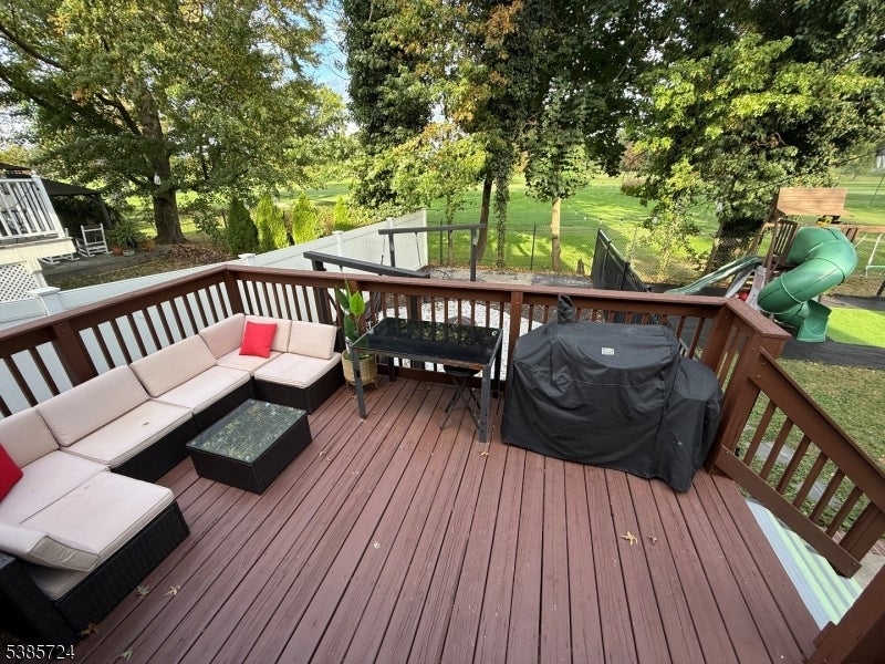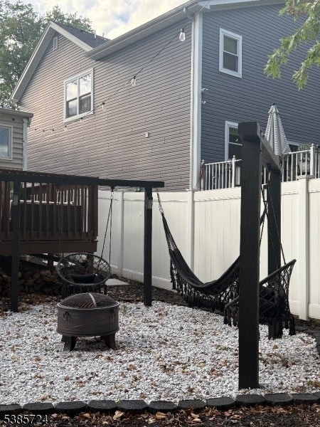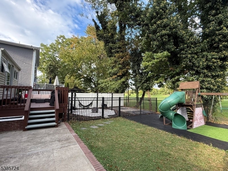 Welcome to this beautifully updated 3-bedroom, 2.5-bathroom home nestled on a quiet street with golf course views! Each level boasts its own bathroom for added convenience, including a half bath on the second floor. Enjoy oversized rooms filled with natural light, stunning hardwood floors throughout, and an elegant kitchen featuring a grandeur island, sleek recessed lighting, and modern finishes. The dining room flows seamlessly through sliding doors onto a spacious deck perfect for entertaining. This turnkey home also features heated floors In first floor bathroom, finished basement, and a backyard oasis with two separate outdoor sections and a cozy fire pit area overlooking the golf course. A true commuter's dream with easy access to NYC transit.