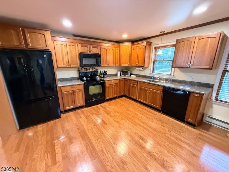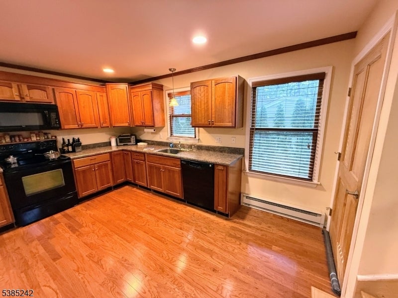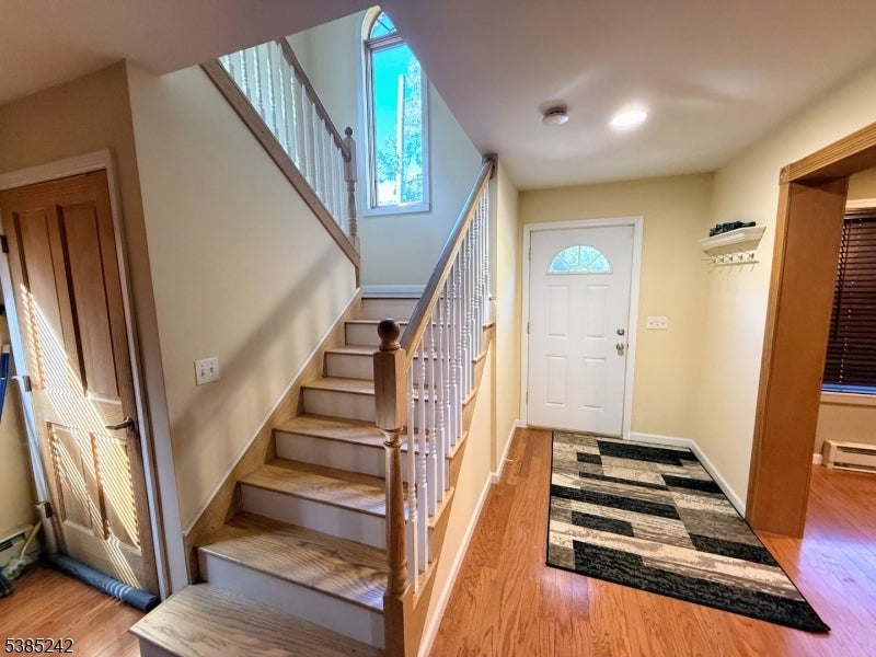 Welcome to this beautifully maintained custom home nestled in the desirable Rainbow Lakes community. This 3-bedroom, 3-bath residence offers a warm and inviting atmosphere with a spacious living room featuring hardwood floors and a cozy wood-burning stove perfect for relaxing evenings. Enjoy cooking and entertaining in the expansive kitchen, designed for both function and comfort. Upstairs, the private Master Suite boasts vaulted ceilings, a luxurious soaking tub, and a massive walk-in closet. The large basement provides abundant storage space, and the one-car attached garage adds convenience. Enjoy access to the community clubhouse and lake privileges, offering year-round recreation and leisure. Don't miss this opportunity to own a unique home in one of the area's most sought-after neighborhoods!