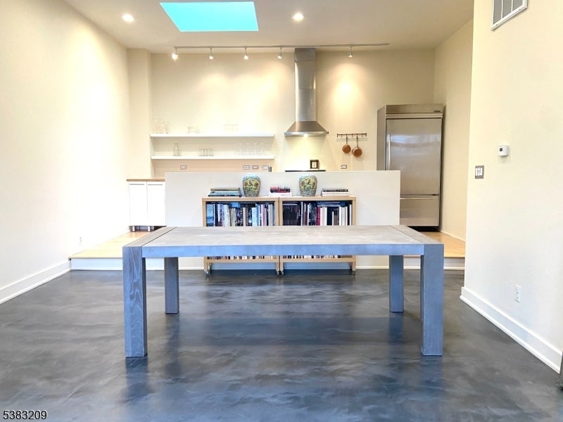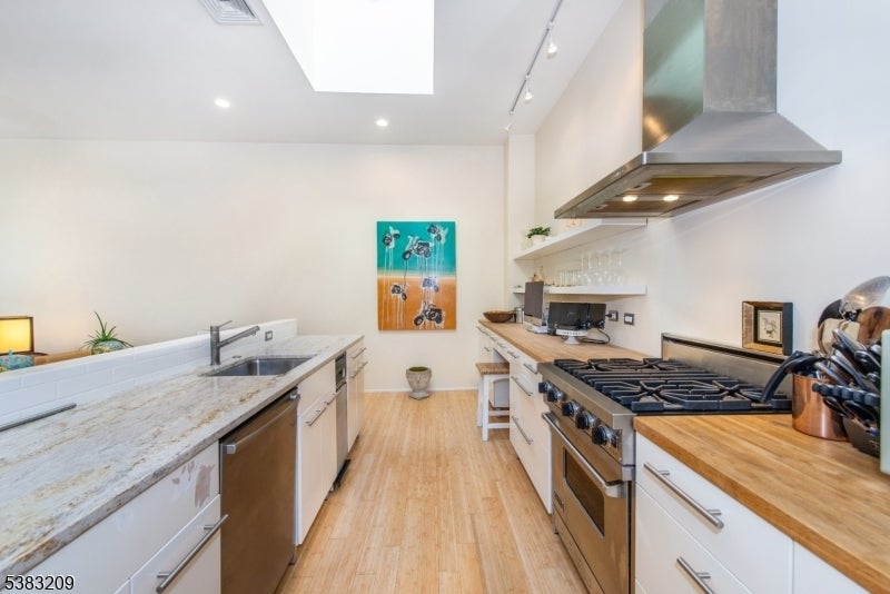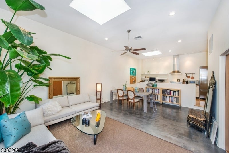 Fully renovated loft with 11' ceilings and hardwood/concrete flooring. Updates include new LED lighting, switches, outlets, high def cable, ceiling fan and floors updated in 2020. The large plaform kitchen has stone/wood countertops and all SS appliances: Viking range with Venezia Zephyr Extractor Hood, Kitchen Aid refrigerator, Bosch dishwasher, Broan compactor and insinkerator (2024) disposer. The updated full bath includes a custom quartz vanity and ceramic tile. Off the sunny primary bedroom you'll find a walk in closet, attic access, in-unit stackable washer/dryer along with a new hot water heater. This light filled unit has desirable south eastern facing windows and two newer skylights. There is 165 sq ft storage area in the basement. This pet-friendly building has elevator access to all floors, a security system, drive through turnabout and 2 parking spaces in a private lot. Peapack-Gladstone has historic small-town charm, stunning natural landscapes, and tranquil lifestyle. Excellent schools, convenient to fine dining, major highways (78, 202/206, 287) and walking distance to NYC transit. Come, enjoy yesteryears lifestyle with modern amenities.
