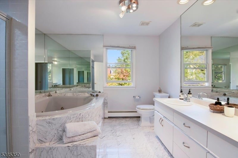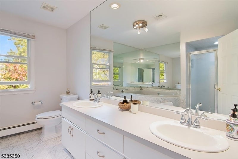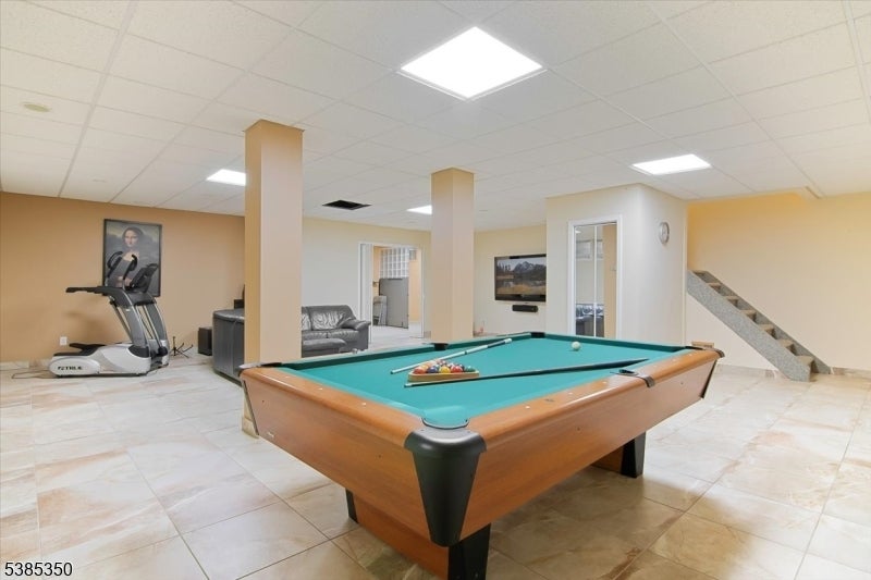Discover this luxurious home offering over 3,000 sq. ft. of living space with beautiful updates throughout. The main level features a large eat-in kitchen with high-end appliances and granite countertops, a spacious family room with a wood-burning fireplace, a formal dining room, and a bright living room. Two sliding doors open to an expansive deck, perfect for seamless indoor-outdoor living. An updated chic powder room and convenient laundry complete the first floor. Upstairs, you'll find four generously sized bedrooms, including a primary suite with two walk-in closets and full bath featuring a double vanity, shower, and jetted tub. A newly renovated spa-like hall bath offers a huge walk-in shower and double vanity. The finished basement is designed for fun and relaxation, complete with a pool table, a home gym with exercise equipment, sectional, and plenty of storage space. Outside, enjoy the privacy of a fully fenced yard with complete privacy! Additional highlights include a two-car garage, proximity to NYC transportation for easy commuting, and a pet-friendly policy (case by case basis). Home is partially furnished with optional furnishings available. This rare rental opportunity combines size, style, and location don't miss it! Lawn maintenance included!