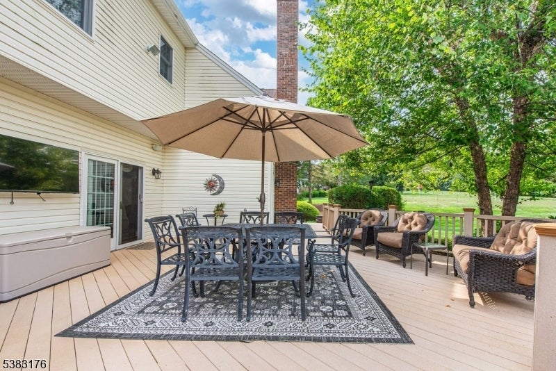 Meticulously maintained and lovingly cared for by the original owners, this stately, brick colonial sits on a private, level acre in a highly sought-after neighborhood. A dramatic two-story foyer with picture frame molding, palladium window, circular staircase and chandelier sets the tone for the elegance inside. Sizeable, formal living and dining rooms, a wood-paneled library, and a spacious great room with stone gas fireplace, skylights, cathedral ceiling and ceiling fan create inviting spaces for everyday living and entertaining. The eat-in kitchen offers a center island, new ss appliances, wine fridge, pantry, granite counter tops and reverse osmosis system. Upstairs, the primary suite boasts two walk-in closets and a spa-like bath with jetted tub, stall shower, dual sinks, heated floors, and sun lamp. Three additional large bedrooms and an updated hall bath, an additional rec/flex space with cathedral ceiling complete the second floor. The basement features a finished area for entertaining, plus ample storage and utilities. Outdoors, enjoy a tranquil water fall, trex deck with natural gas bbq, paver patio, a hot tub, night scaping and professional landscaping. Additional highlights include hardwood flooring, whole-house generator, EV charger, irrigation system, epoxy garage floor, two central a/c units, 5-zone heating, cedar closet and a blue stone porch. Located near Ironia school, parks, trails, restaurants, Rt.10 & nearby Morristown. Don't miss this exquisite home!