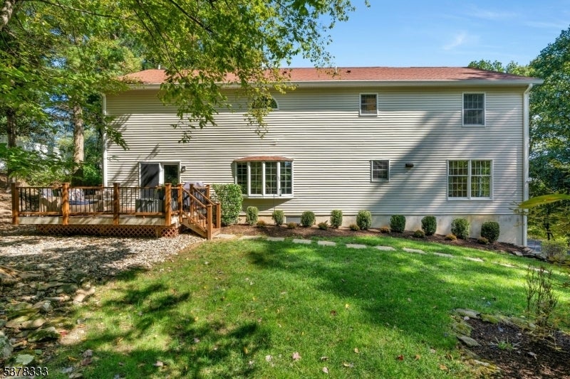 Price Improvement/Reduction - Don't Miss this Fabulous Value - an acre of private property for $899,000. Meticulously maintained 1 owner home -4 bedroom, 2.1 bath center hall colonial. Upon entering from the east to west front porch into the bright two story foyer, you discover a formal dining room with french doors leading to a sun drenched, expansive living room with fabulous wood floors, beautifully renovated kitchen with granite countertops, separate dining area, center island and powder room. Adjacent to the kitchen is a cozy back-to-front family room with rustic wood burning fireplace. French doors here lead to a maintenance free Trex deck and the serene backyard. The front staircase in the sunny two story foyer, whisks you upstairs to the second floor. This level offers a primary bedroom with large WIC, en-suite bath with dual sink vanity, soaking tub and separate stall shower. Also found on this level are 3 amply-sized bedrooms, all with double closets, a full bath with double sinks and a linen closet. An ultra convenient full-sized laundry room with built-in folding table is an added bonus on this level. The unfinished basement with high ceilings awaits your finishing touches. On this level is access to the oversized two car garage, that offers plenty of room for an array of additional storage. Property also comes with Generator hook-up and Storage Shed. The mailing address for this home is Morris Plains. First Showing date Thursday 9/25/25.