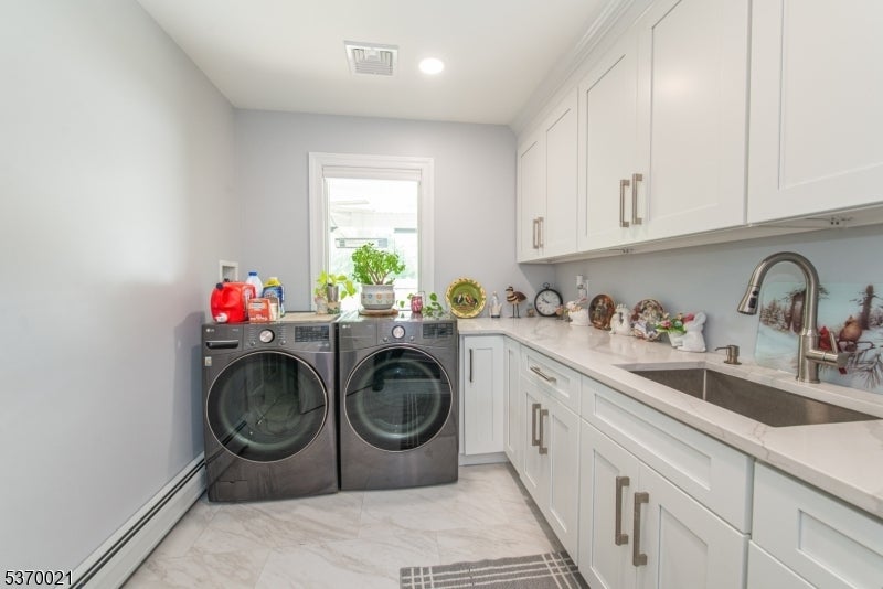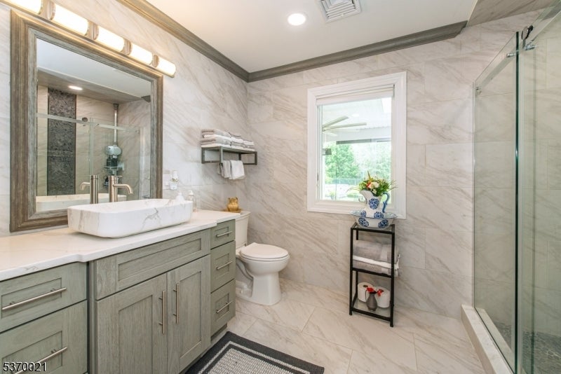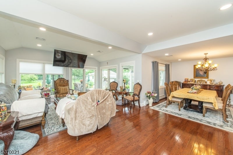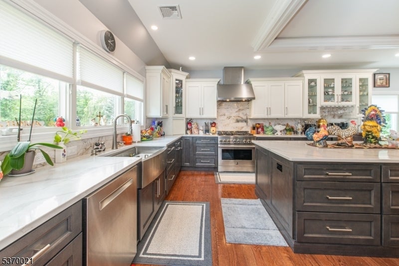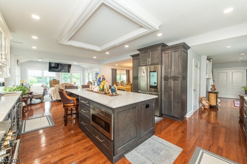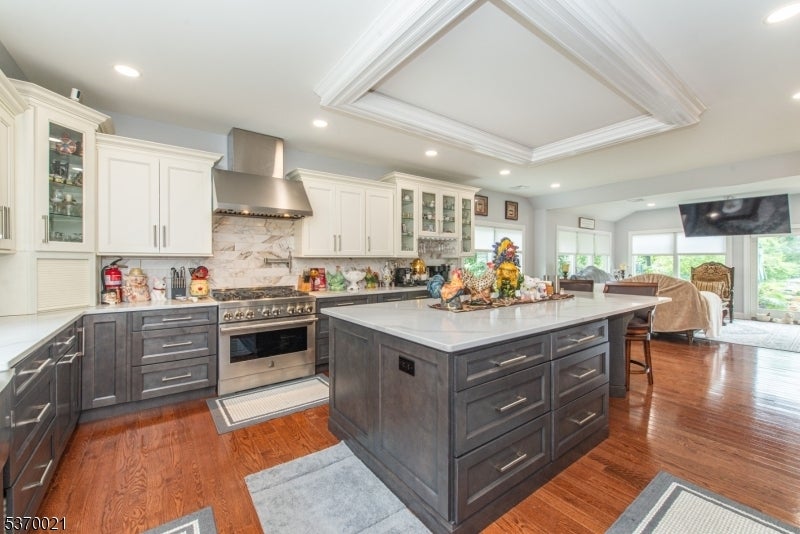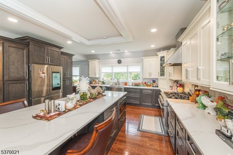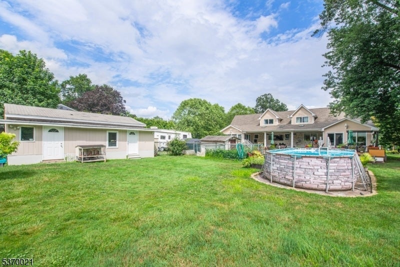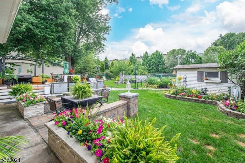 This spectacular over 3000 sq. foot expanded ranch totally rebuilt in 2023. Home is located in a quiet neighborhood on a cul-de-sac, features updates throughout its exterior and interior and boasts 4 bedrooms and 3 full bathrooms. Highlights include an oversized driveway with a 4-car detached garage and a bonus space for storage. Main floor offers updated kitchen with all the bells and whistles including, 2 sinks, 6-burner oven, built-in microwave, water filler, center island, SS appliances, quartz countertops, walk-in pantry and plenty of cabinet space. This open layout expands into a living room and formal dining room. Sliders allow access to trek deck which also leads to an outdoor kitchen and above ground pool. The patio boasts fans and heaters above making this fenced-in exterior a perfect spot to relax and entertain. Other rooms include, a full-size laundry room with sink and cabinets, a large bedroom, full bath, and a spacious master bedroom with attached bath and access to a jacuzzi room with air conditioning and entry to backyard. Upper level offers a bedroom, family room, office and full bath. Lower level provides a partially finished basement. Utilities are brand new and with all the updates throughout, this home is move-in ready! This listing is in a great school district and is close to shopping, restaurants and NYC transportation. A great home on a spacious lot.
