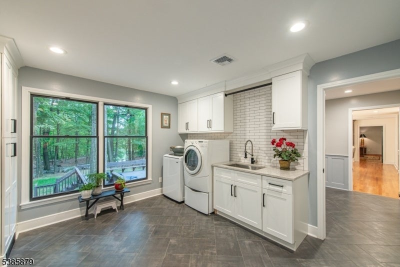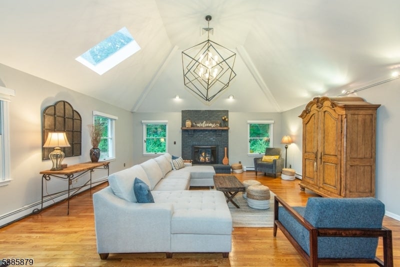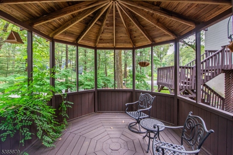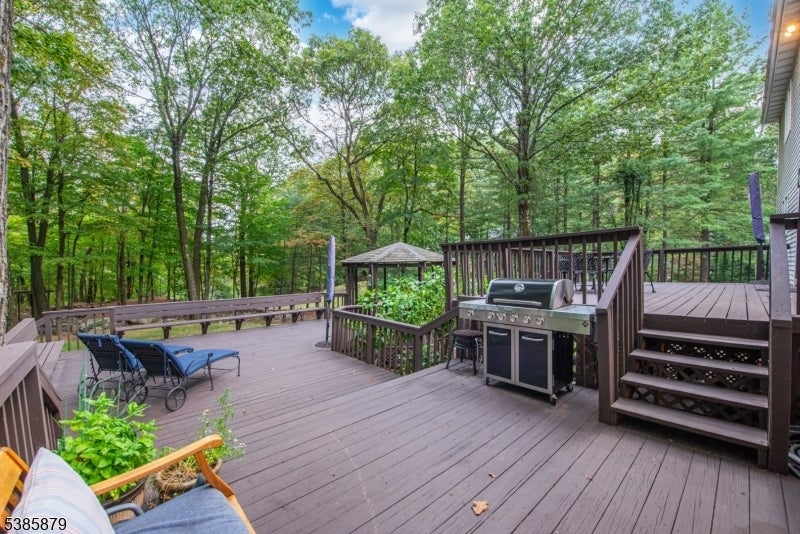 Welcome to this impeccably maintained 4-bedroom, 3.1-bath Center Hall Colonial, beautifully updated and thoughtfully decorated throughout. Located in one of the areas most desirable neighborhoods, this sun-drenched home blends timeless elegance with modern convenience. The state-of-the-art eat-in kitchen features app-controlled JennAir appliances, a built-in microwave, breakfast bar, beverage refrigerator, and custom finishes. The great room impresses with soaring ceilings, skylights, a gas fireplace, and built-ins ideal for entertaining or everyday living. Glass sliders lead to a multi-level deck with a gazebo, overlooking your private grounds. The main level also includes a stylish powder room, a dedicated office, and a well-equipped laundry room with stone counters, sink, and custom cabinetry. Upstairs, the primary suite offers a walk-in closet, generous living space, and a beautiful bath. Three additional bedrooms and a full hall bath complete the second floor. The finished, walk-out LL adds versatility with a family room, exercise area, full bath, ample storage, and direct access to the oversized two-car garage. Additional features include public water, natural gas, and freshly sealed driveway, and a peaceful setting close to shopping, parks, and major highways. This is the one you have been waiting for!