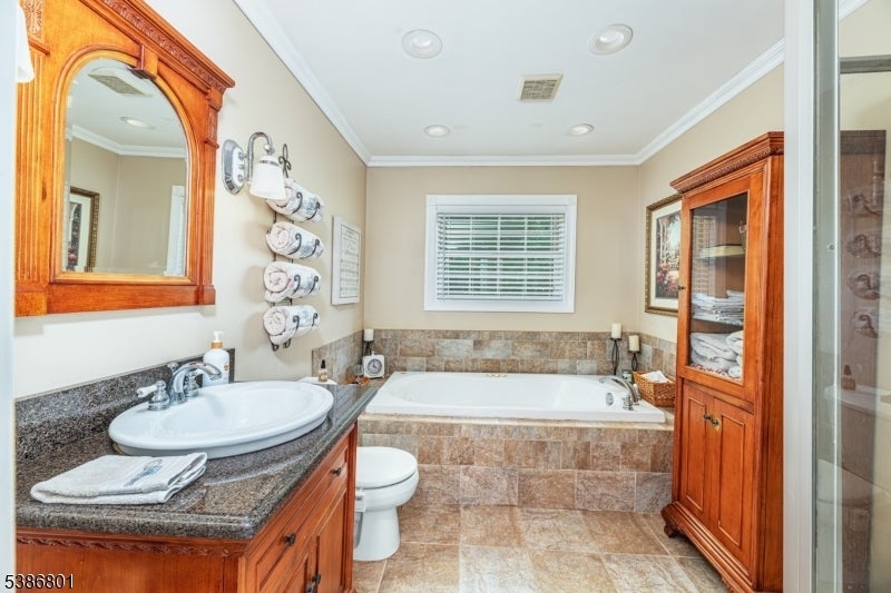 Meticulously maintained home, updated, located on a private road and central to Vernon Township schools, shopping, Mountain Creek Ski Resort, Crystal Springs Resort/Golf, and Rt 23. Home has 3BR, 2.5 Baths, + bonus room for home office. Home also features HW floors, carpet, tile flooring, and crown moldings. Maple cabinets in kitchen with stainless steel appliances. Fireplaces are 1-Wood Burning Stove & 1-Pellet Stove. Slider doors to large deck and backyard has A/G pool. Come see this for yourself!
