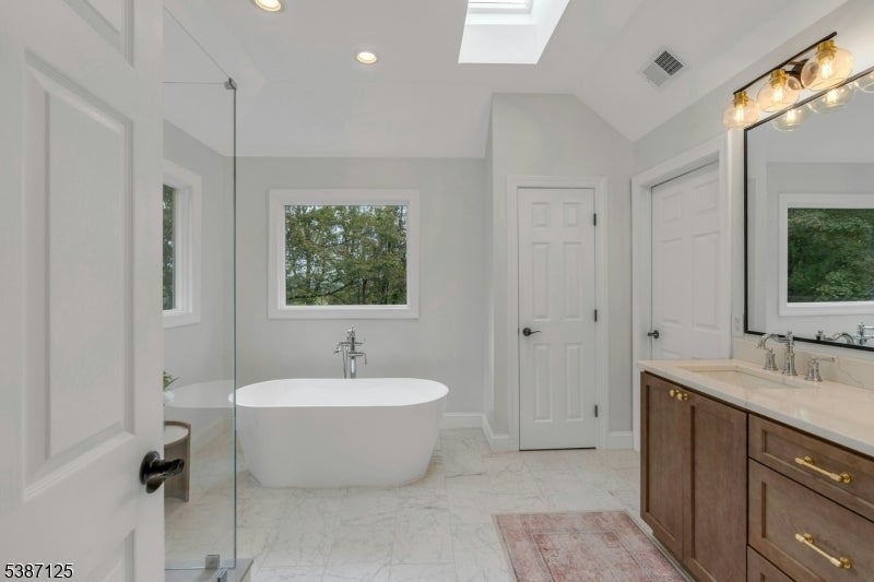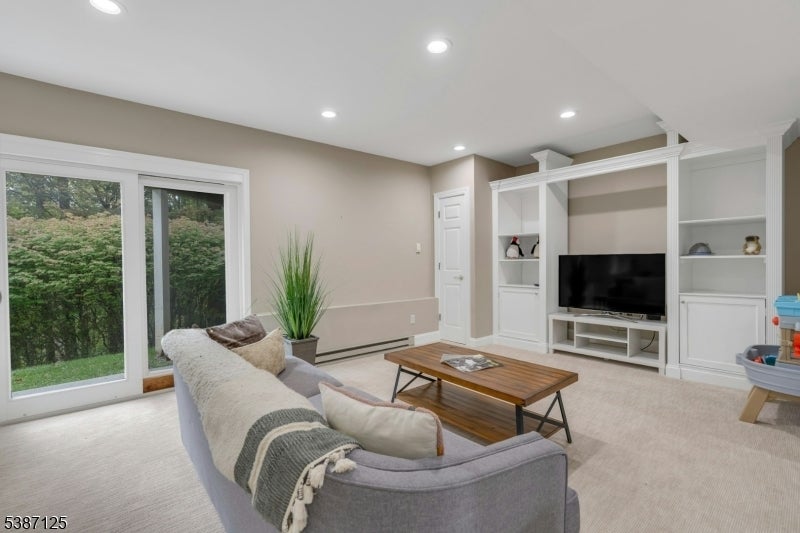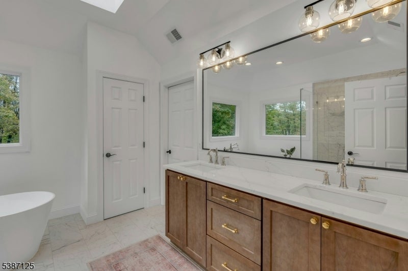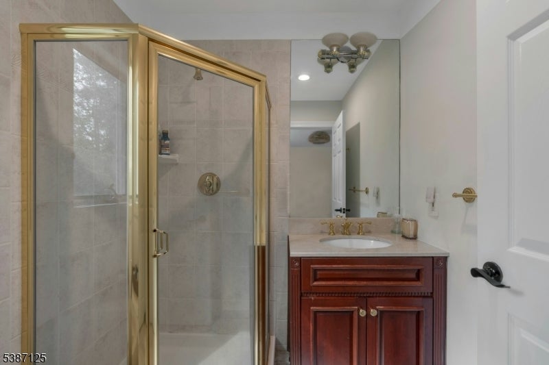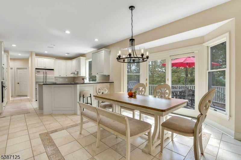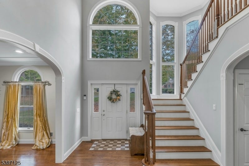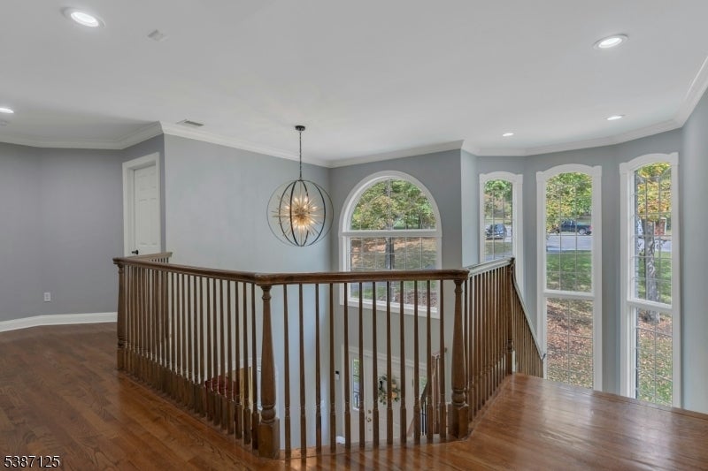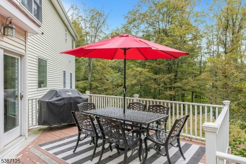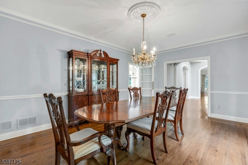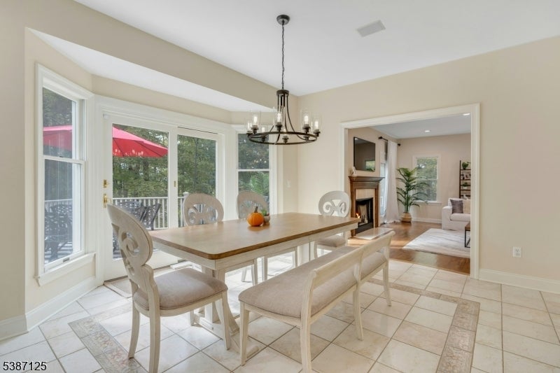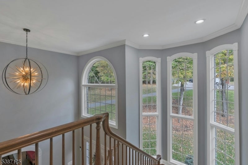 Located in a quiet cul de sac, this stately beauty offers 5 bedrooms, 5 and a half baths and elegant details throughout, including volume ceilings, decorative moldings & hardwood floors throughout most of the home. The dramatic 2 story entry leads to large, sundrenched rooms, courtesy of the many large windows featured here. Offering a great flow for entertaining, the first floor features a comfortable and cozy family room off the kitchen with fireplace, classic living and formal dining room and a well equipped kitchen suitable for the most pampered chef featuring stainless appliances, many cabinets and a pantry, a center island and a sunny breakfast nook. In addition, a bedroom and full bath, as well as a large office add to this level. The luxurious primary suite includes a sitting room with dual gas fireplace, two walk in closets & a sumptuous bath, new in 2024 with freestanding soaking tub, oversized shower, double sinks & private commode. Three more bedrooms grace this level, including one ensuite & a hall bath to serve the other 2 bedrooms. The walk out lower level includes a huge recreation room, exercise room, full bath & sliders to the rear yard which offers beautiful sunset views in the fall and winter, while lush foliage provides natural privacy in spring and summer! A spacious mud room connects to the 3 car garage from this level too. Enjoy top rated schools, community events, and small-town charm in sought after Mendham- a place you will love to call home