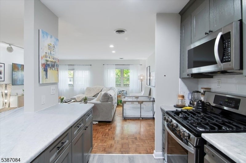 Highest & Best offers due 10/10 at 2PM. Welcome to this sun-splashed 1-bedroom, 1-bath condo with 790 sq. ft. of effortless living in one of Montclair's most desirable neighborhoods. Location doesn't get better - short stroll to Whole Foods, downtown Montclair's shops and restaurants, and nearby parks, while enjoying the historic charm of Upper Mountain Avenue's iconic mansions right outside your door. Inside, the open, airy layout features hardwood parquet floors and a generously sized bedroom that fits a king bed with ease, complete with two mirrored closets. The designer kitchen, fully renovated in 2020, boasts granite countertops, custom cabinetry, a stylish backsplash, and stainless-steel appliances - perfect for everyday living or entertaining in style. A rare Montclair perk: off-street parking for every resident, plus guest parking. Garages are available for just $65/month (first-come, first-served). Say goodbye to circling for street parking - your spot is always waiting. Enjoy peace of mind with an HOA that covers HEAT, hot water, garbage, and snow removal. Residents also enjoy beautifully maintained common spaces, friendly neighbors, and convenient laundry facilities. Whether you're a first-time buyer, downsizer, or looking for a pied-a-terre, this condo delivers the total package: prime location, modern upgrades, rare parking, and worry-free living. Don't miss your chance - schedule your private tour today and see why this Montclair gem won't last long!