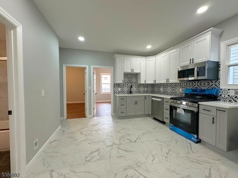 Newly Renovated Apartment located in Clifton NJ! This duplex includes 3 bedrooms, 2 full bathrooms, with new kitchen including appliances (dishwasher + stove + microwave + refrigerator), in unit laundry available (washer + dryer), and 2 additional rooms in the lower level! This unit is very spacious and spans from the first floor to the ground levels. There is a kitchenette with an additional walk out leading to the backyard. Close to shopping centers, transportation, schools and more!