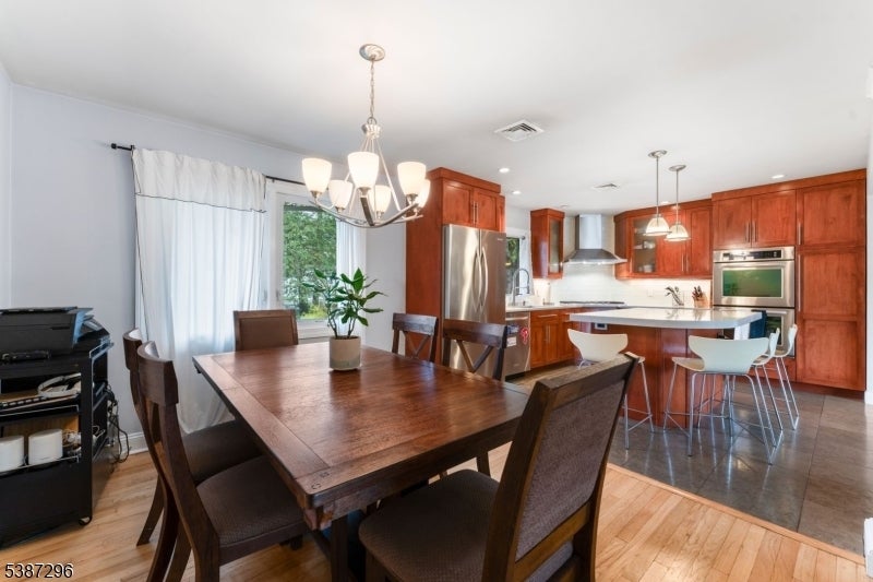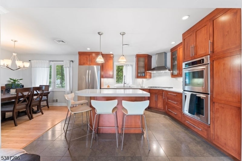 Turnkey 4BR, 2.5BA split-level home in prestigious North Caldwell. Prime location near NYC bus line, Hilltop Reservation trails, schools, shopping, and dining. Fully renovated in 2011 with all major updates including kitchen appliances, bathroom fixtures, windows, doors, driveway, and landscaping. The main level features an open concept with a living room, dining room and kitchen with stainless steel appliances. The open living room flows to a Trex Transcend deck, perfect for entertaining, and overlooks a park-like, fenced backyard. Beautifully landscaped and well maintained. The second level features 3 bedroom and the main bathroom. The primary suite is privately located on the third level with a primary bathroom and walk in closet. Down in the ground level you'll find a family room which leads out to the screened porch. The laundry room and powder room are also located on the ground floor. The finished basement features a recreational room. Substantial living space and location makes this home a must-see!