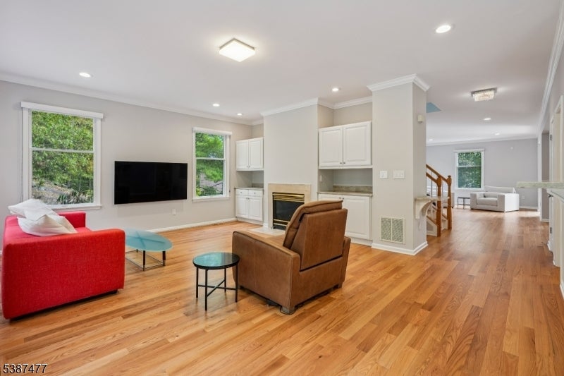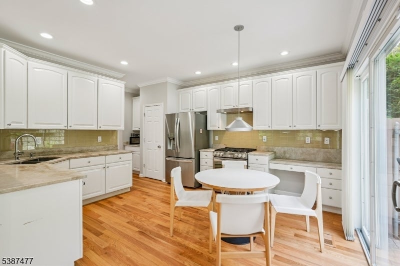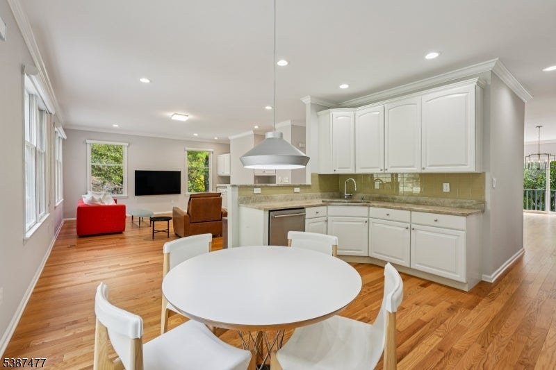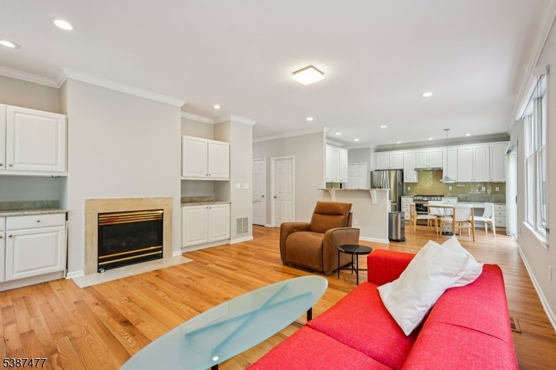 Welcome home to this tastefully updated 3 bedroom, 2.5 bathroom end-unit townhouse in the sought-after High Point Community. Step into the inviting entry foyer, which leads upstairs to the spacious open-concept main living area. The sun-filled living room welcomes guests with soaring ceilings, oversized windows, and gleaming hardwood floors, creating the perfect setting for both relaxation and conversation. A wide cased opening flows into the elegant dining room, an ideal space for intimate dinners or lively gatherings. Just beyond, the family room features a cozy gas fireplace, custom built-ins, and a warm, comfortable atmosphere. The beautifully updated kitchen is the true heart of the home, boasting custom cabinetry, Brazilian quartzite countertops, high-end appliances, a butler's pantry, and a separate dining area. A powder room completes this level. Upstairs, retreat to the generous primary suite with 2 walk-in closets and spa-like en suite featuring dual vanities, a glass-enclosed shower, and a soaking tub. Two additional bedrooms, full bath and laundry room complete the second floor. The fully finished basement offers a den, storage, and convenient garage access. Sliding glass doors off the kitchen open to an elevated stone patio perfect for outdoor entertaining and al fresco dining. High Point residents enjoy a vibrant lifestyle with a clubhouse, pool, pickleball, and tennis courts. This home combines elegant updates with resort-style amenities for everyday living.