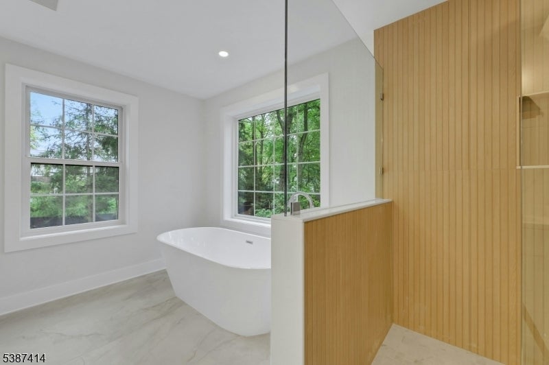 Welcome to your dream home! A brand-new Colonial masterpiece nestled in a peaceful wooded community. This 5-bedroom, 4 and a half bath residence seamlessly blends timeless architecture with modern luxury - perfect balance of luxury, comfort, and natural beauty, offering a perfect retreat for everyday living and entertaining. Step through the inviting entryway into a spacious open floor plan with high ceilings, hardwood floors, large windows, and elegant finishes throughout. The gourmet kitchen features a large center island, custom cabinetry, exquisite countertops, and high-end stainless steel appliances, flowing effortlessly into the spacious open floor plan for dining and living with a cozy fireplace. The ground-floor bedroom with a full bathroom provides convenience for expansive living. The upper level boasts 4 bedrooms including a luxurious primary suite with expansive bathroom, walk-in closet, and serene wooded views. Two bedrooms share a full bathroom and the fourth bedroom includes an en suite bathroom. Additional highlights include a home office/flex space, full basement with endless potential, and an attached two-car garage. Outdoor living is equally inviting, with a private backyard with deck and patio surrounded by natural beauty ideal for relaxation or entertaining. This home offers tranquility while still being conveniently close to shopping, dining, and major commuter routes. Don't miss this opportunity to own a brand-new Colonial in an unbeatable setting.