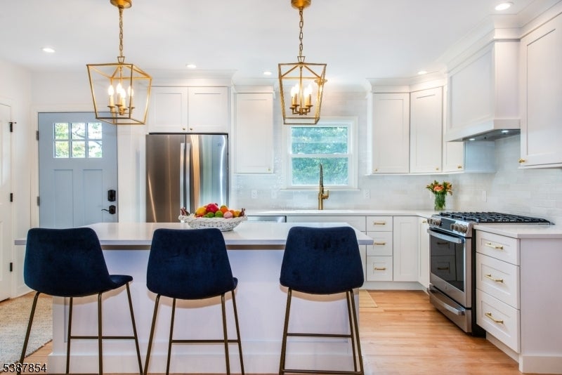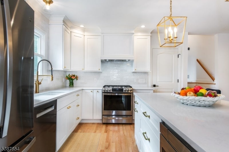 Great Burnham Park location sought after for it's close proximity to parks, Whole Foods, Morristown Center and Mid-Town Direct. This turn-key home was completely renovated in 2024 with new roof, windows/solid wood doors/patio door, Cedar Impression siding, systems including HVAC, electrical, hot water tank and more! Interior renovations complete this picture perfect home with a high-end kitchen with large center island, quartz counters and high-end appliances and finishes open to living and dining area. New bathroom, recessed lighting, and refinished hardwood flooring thru-out. Don't miss this fabulous opportunity in one of the most desirable locations in Morris Township. Enjoy total privacy in tiered rear yard with stone paths and walls backing to protected parkland.