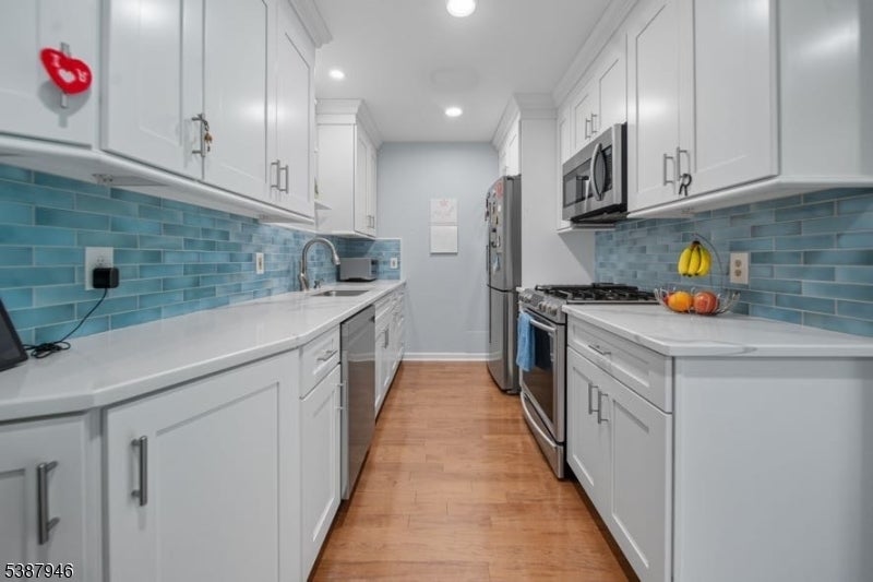 Step into this beautifully reimagined 2-bedroom, 1-bath residence at 253 Park Ave #305. This home blends modern comfort with stylish finishes, featuring an open-concept living and dining area with recessed lighting that flows into the designer kitchen with sleek cabinetry, a tile backsplash, stainless steel appliances, and ample counter space.The spacious primary bedroom includes a walk-in closet, while the renovated bathroom boasts modern fixtures, elegant tile, and built-in Bluetooth speakers. The second bedroom offers flexibility as a guest room, home office, or den.Recent upgrades: New HVAC (2024) New Water Heater (2023) New Washer/Dryer (2025)With 1 assigned parking space, low $280 HOA fees, and a prime location near shopping, dining, and NYC transportation, this pet-friendly home offers both convenience and comfort.