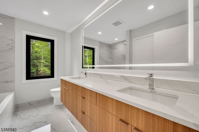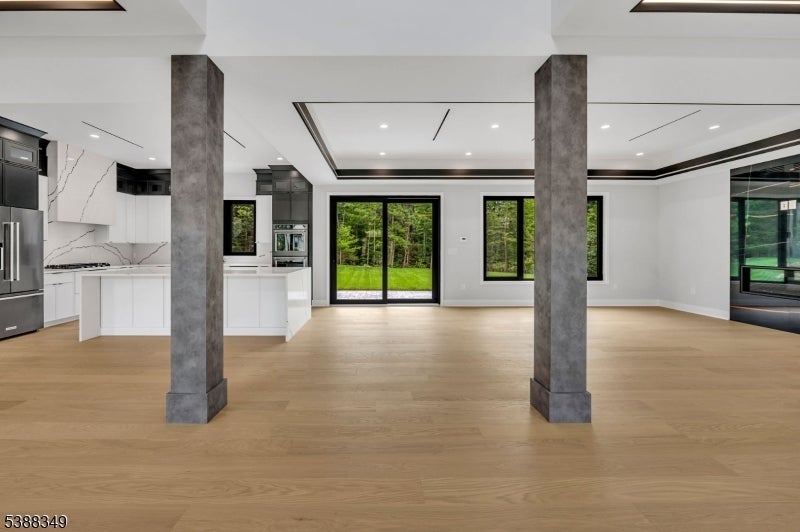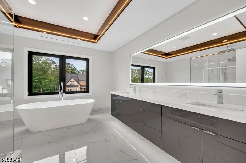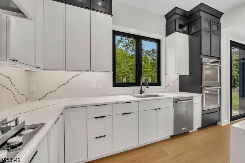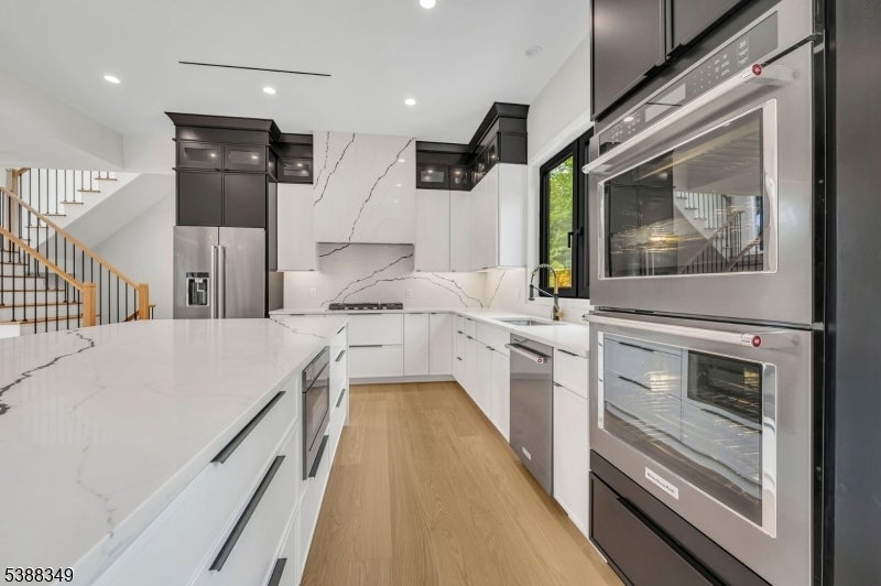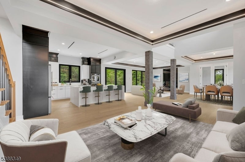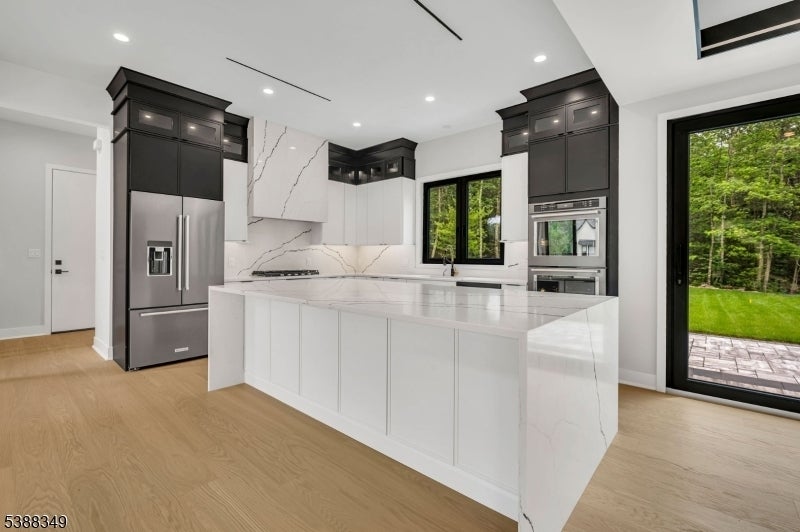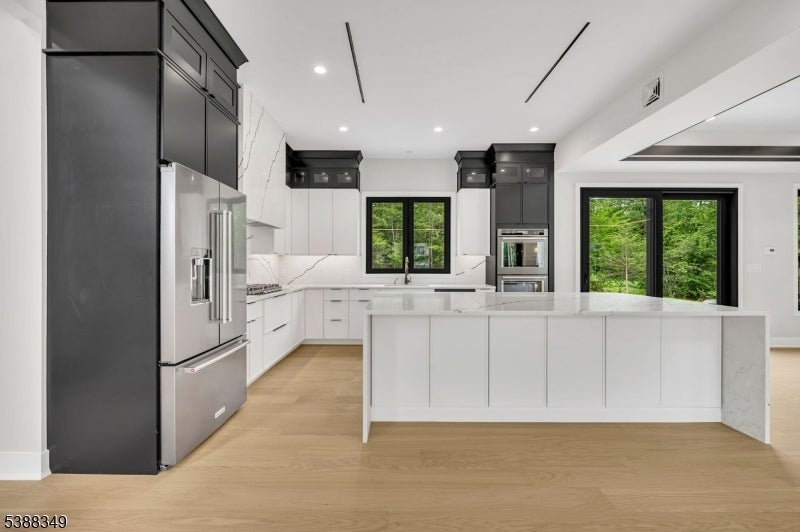 Experience unparalleled elegance in this stunning luxury home featuring exquisite high-end finishes throughout. The main level welcomes you with a grand foyer, leading to a spacious living room and a sunlit family room with a stylish fireplace. The formal dining room flows into a chef's dream kitchen, showcasing a waterfall granite island, premium appliances, and an expansive eat-in area. Vaulted ceilings and dramatic lighting elevate the ambiance throughout the home, while oversized European windows flood the interior with natural light, enhancing the sense of space and sophistication. A private office, powder room, and attached 3-car garage complete the first floor. Upstairs, the lavish master suite offers a true retreat with spa-like amenities. A junior suite, three additional spacious bedrooms, a full bathroom, and a convenient laundry room provide ample space for comfort and functionality. The fully finished basement is an entertainer's dream, featuring a sleek wet bar, powder room, and generous space for hosting guests. Outdoors, enjoy professionally designed landscaping, a full sprinkler system, and a sense of refined exclusivity that defines this exceptional property.