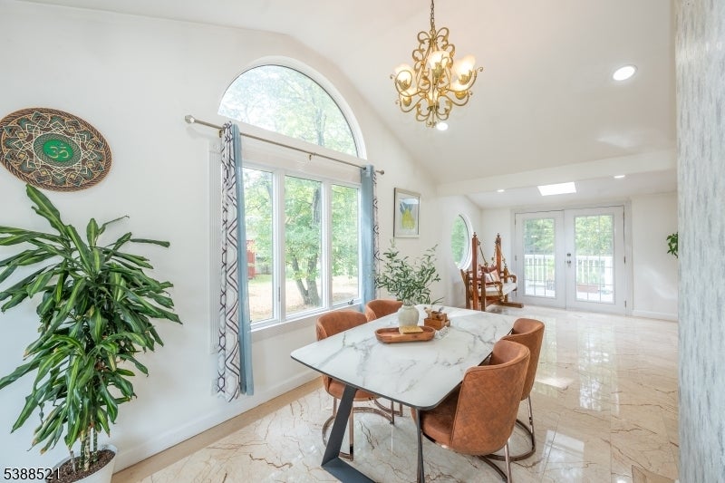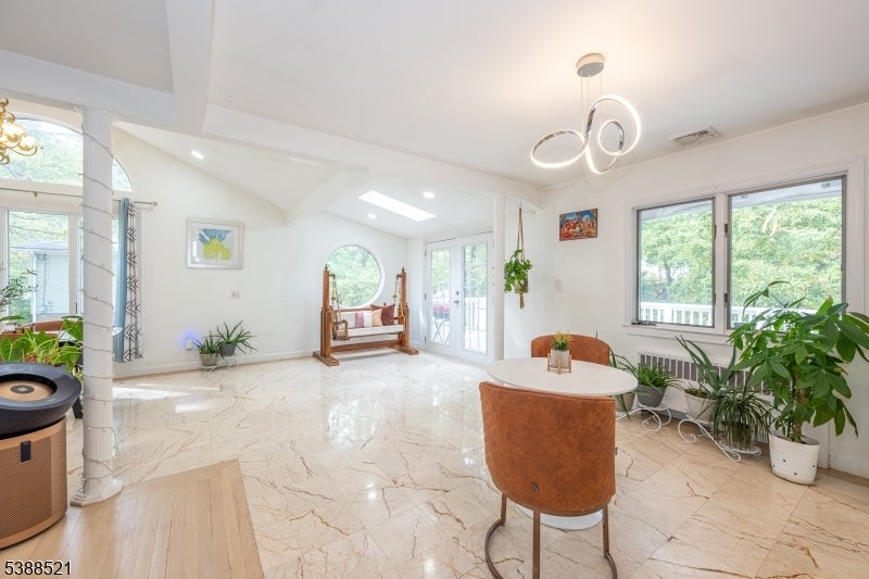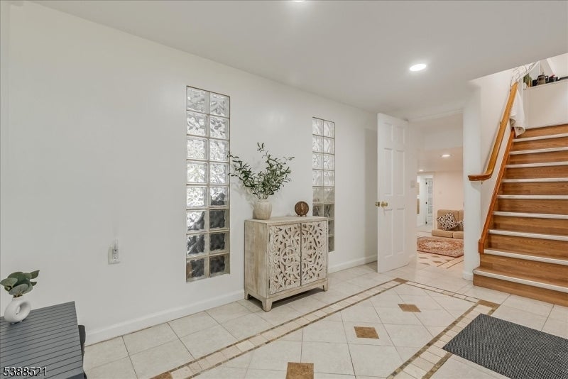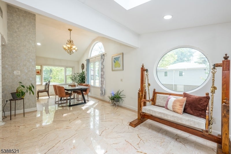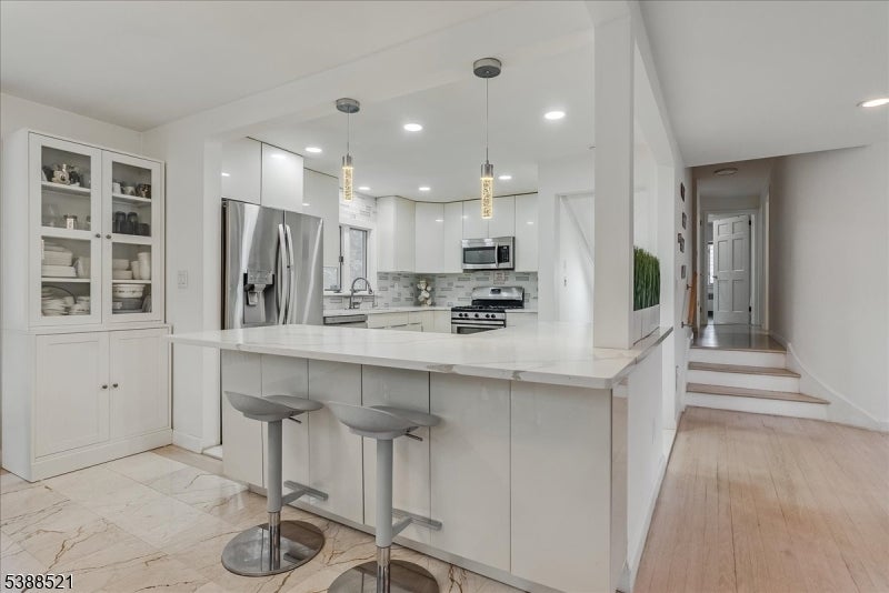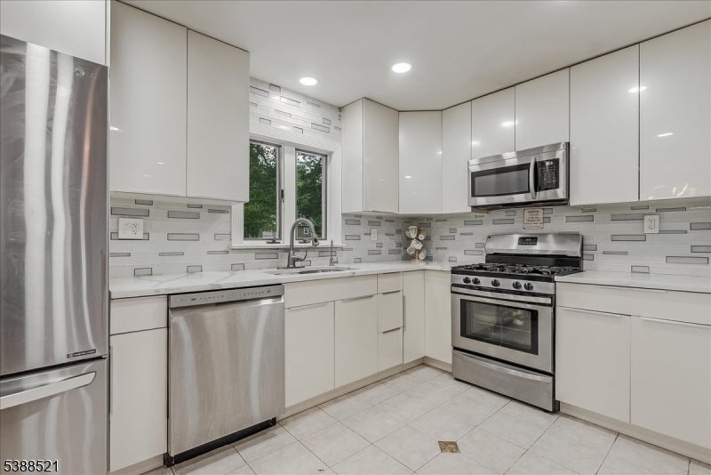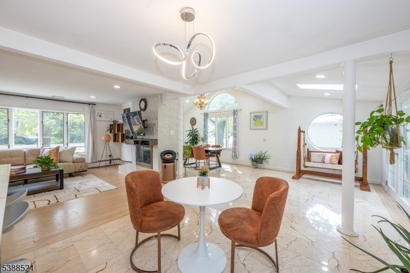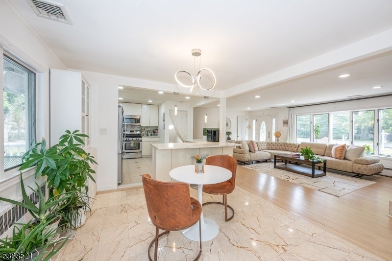 Nestled on a picturesque half-acre in coveted North Caldwell, this updated 4-bedroom, 3-bath split-level home offers both style and versatility. The main floor impresses with soaring ceilings, hardwood floors, and an open-concept design that connects the sunlit living room with fireplace to the dining area and renovated kitchen with quartz countertops and stainless steel appliances. Glass sliders open to a deck and patio overlooking the expansive backyard, creating an ideal setting for entertaining or relaxing. Upstairs, three spacious bedrooms include a serene primary suite with a private bath. The lower level, with its own entrance, bedroom, living space, and full bath, is perfect for long term guests or a home office. A walk-up attic adds room for future growth. With top-rated schools, easy NYC commuting, and nearby bustling downtowns, this home blends modern comfort, timeless charm, and an unbeatable location.