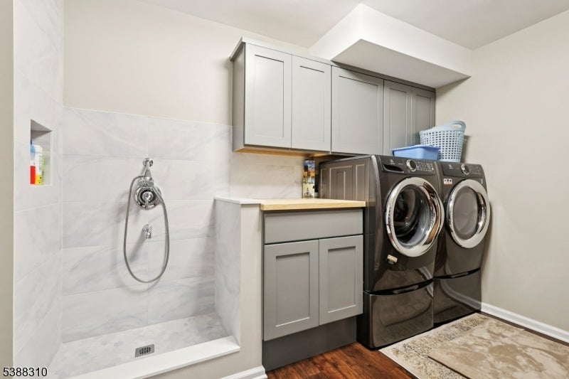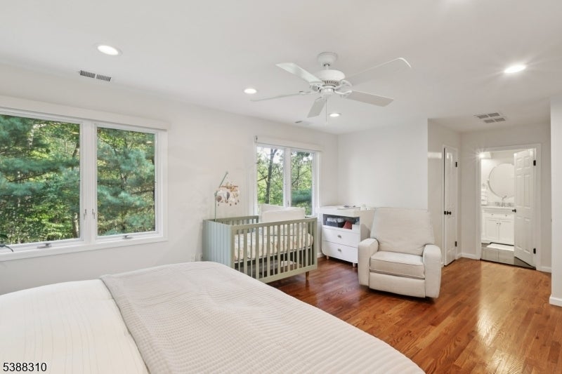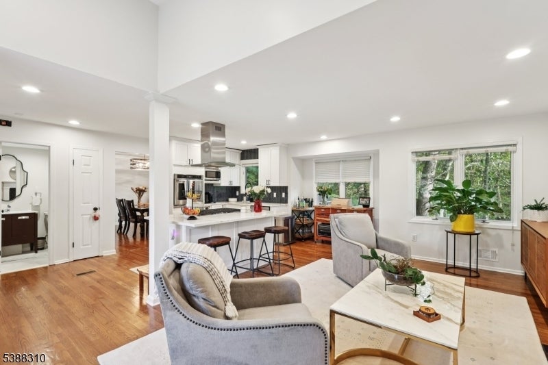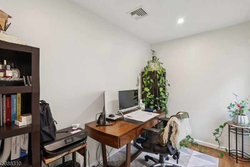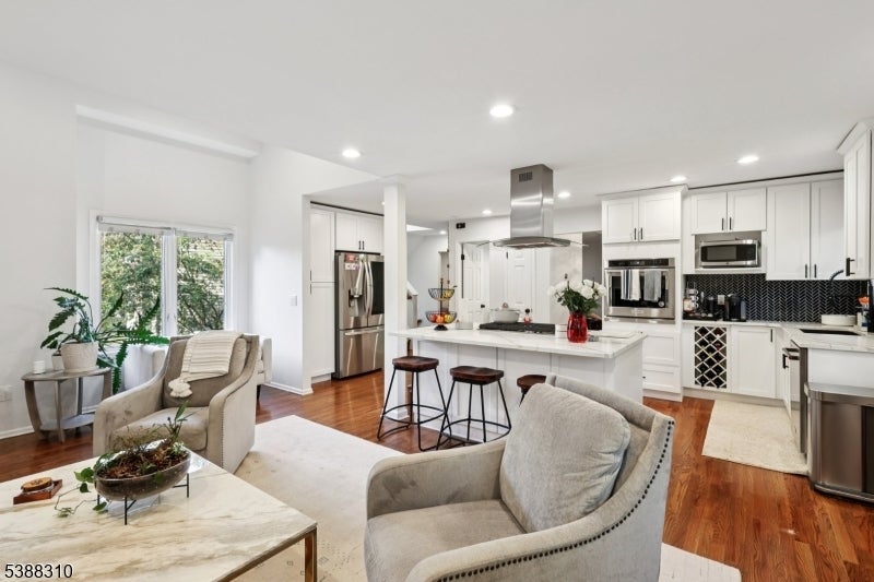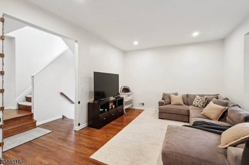 This ASCOT model townhome was recently updated from top-to-bottom with a designers touch. NEW HVAC 2024. The kitchen (2022) has quartz counters, deep sink and chef's grade stainless steel appliances. Added pantry space and cabinets in the prep island create the storage you are looking for. The kitchen is open to the family room w/fireplace for easy entertaining and cozy evenings. The dining room flows to the living room and the entire rear of the townhome faces a private wooded oasis with a gentle stream. Privacy galore. Gleaming Hardwood Floors (2022) throughout. The second floor has an oversized primary bedroom with 2 walk-in closets. The bathroom has a dual marble vanity and large shower (2022). The 2nd bedroom is large and across from the hall bath with a shower/tub. There is a 3rd room that allows for a nursery or office. The basement is finished with a recreation/play space, custom floor to ceiling storage, laundry room and a new dog bath station (2023) for the furry members of the home. The 2 car garage is attached and finished. The complex offers a pool, tennis courts and strong sense of community. Close to Whole Foods, I-280 and the jitney to NJ Transit.