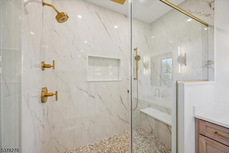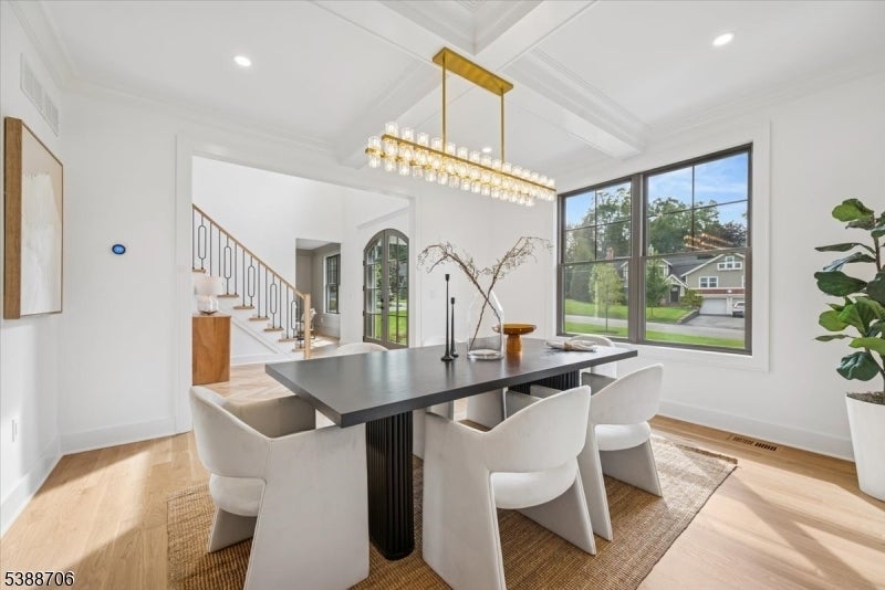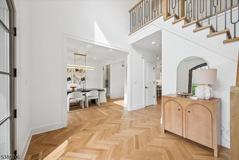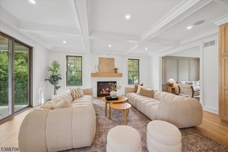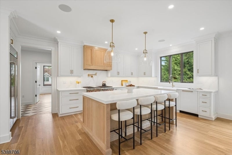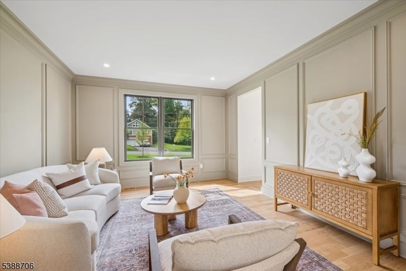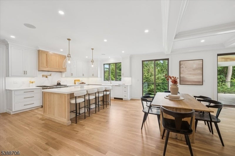 Welcome to 17 Hilltop Terrace, where impeccable design meets modern luxury in one of Chatham Township's most coveted locations. This 7-bedroom, 7.5-bath masterpiece impresses at every turn, from the custom chef's kitchen with inset cabinetry, high-end appliances, and dramatic wine wall, to the white oak floors and soaring ceilings that create an airy elegance throughout. The show stopping primary suite features a designer chandelier, spa-inspired bath with a soaking tub, custom vanities, and an oversized shower. A scullery, spacious first-floor ensuite bedroom, two mudrooms, and a covered patio with fireplace elevate everyday living. The finished lower level is an entertainer's dream with a wellness room, recreation area with kitchenette, private guest suite and 3 car garage. Perfectly positioned near top-ranked schools, shopping, Midtown Direct trains, and major airports, this home delivers the ultimate in style, comfort, and convenience. 6032 square feet includes LL, 1st and 2nd floors of living space.