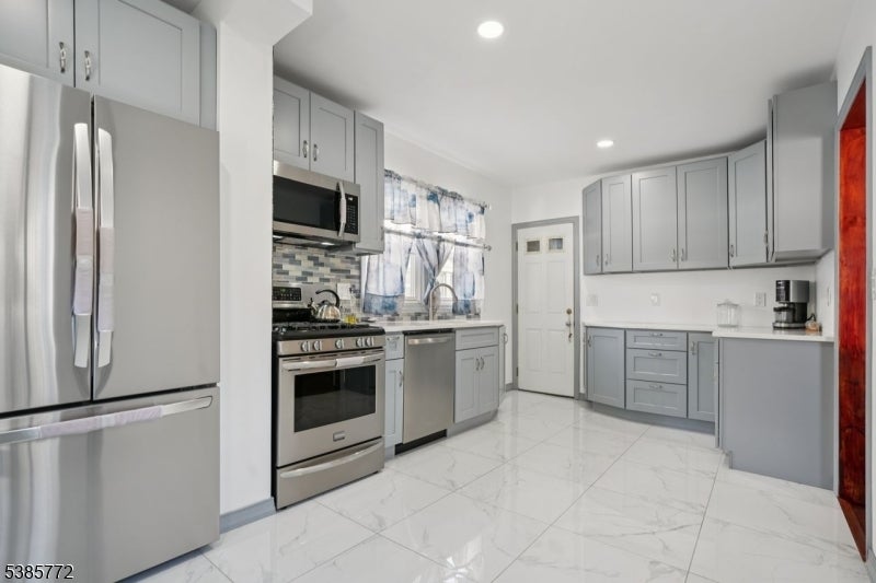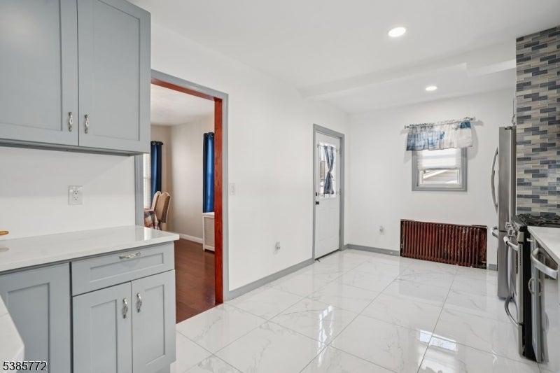 Stylish 3-Bedroom, 2-Bath Home with Modern Updates and Classic Charm. This beautifully updated 3-bedroom, 2-bath home seamlessly blends modern upgrades with timeless character. Featuring gleaming hardwood floors throughout the main living areas, the home offers a warm and inviting atmosphere from the moment you step inside. The renovated kitchen (2025) is a showstopper, boasting all-new cabinetry, sleek countertops, stainless steel appliances, updated lighting, and new windows. A convenient door leads out to a brand-new, oversized deck perfect for relaxing, entertaining, or outdoor dining. Enjoy meals in the formal dining room, and unwind in the bright and welcoming living room with a cozy wood-burning fireplace and a warm, sun-filled den. Upstairs, you'll find three spacious bedrooms filled with natural light, and a fully renovated bathroom (2025).The finished third floor offers a flexible bonus space ideal as a fourth bedroom, home office, or playroom. Downstairs, the entertainment-ready basement features a wet bar, perfect for game days or movie nights and an office. The converted garage now serves as a large storage area. Located just minutes from the light rail and NYC train, this move-in ready gem offers modern comfort, flexible living spaces, and a commuter-friendly location.