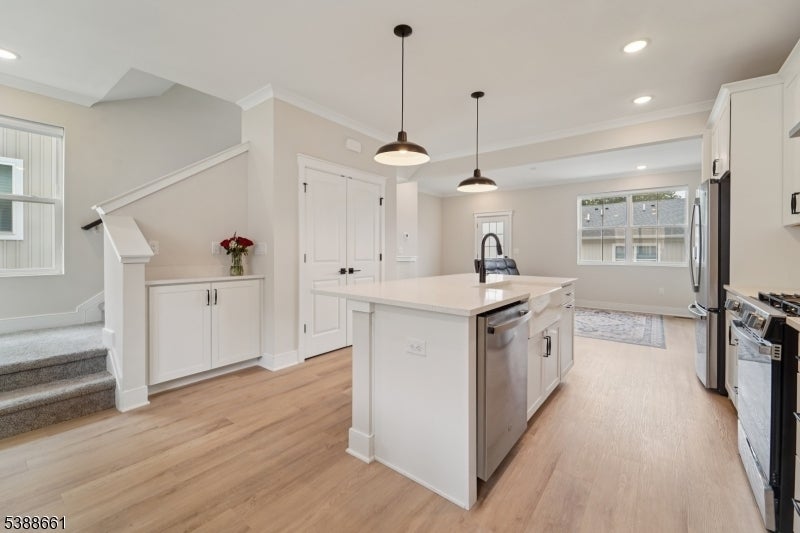 Brand-new 3-bedroom, 2.1-bath end-unit townhome in Morris Woods offers modern style, convenience, and comfort. The open main level features a bright living room, dining area, and center-island kitchen with breakfast bar, upgraded tile backsplash, GE stainless steel appliances including a gas range with griddle, and a pantry. Sliding doors open to a private deck, ideal for entertaining or relaxing. The finished ground-level office/family room adds flexible space for a home office or media room. Upstairs, the gracious primary suite boasts a walk-in closet, dual-sink vanity, and glass shower with subway tile surround. Two additional bedrooms, chic modern baths, and laundry on the bedroom level provide convenience and function. Additional highlights include crown moldings, soft-close cabinetry, new construction energy-efficient systems, plush bedroom carpeting, a 1-car garage with driveway parking and EV outlet, and a private patio. Morris Woods is a premier new community in Wharton, combining low-maintenance living with easy access to I-80, I-280, shopping, dining, and outdoor recreation. Dover Train Station with direct service to NYC is less than 3 miles away. Enjoy local dining on Main Street or shop at Rockaway Townsquare, both just minutes away, or hike at a nearby park. Hedden Park is a favorite for its many outdoor facilities, and Hurd Park features stunning cherry blossoms every spring!