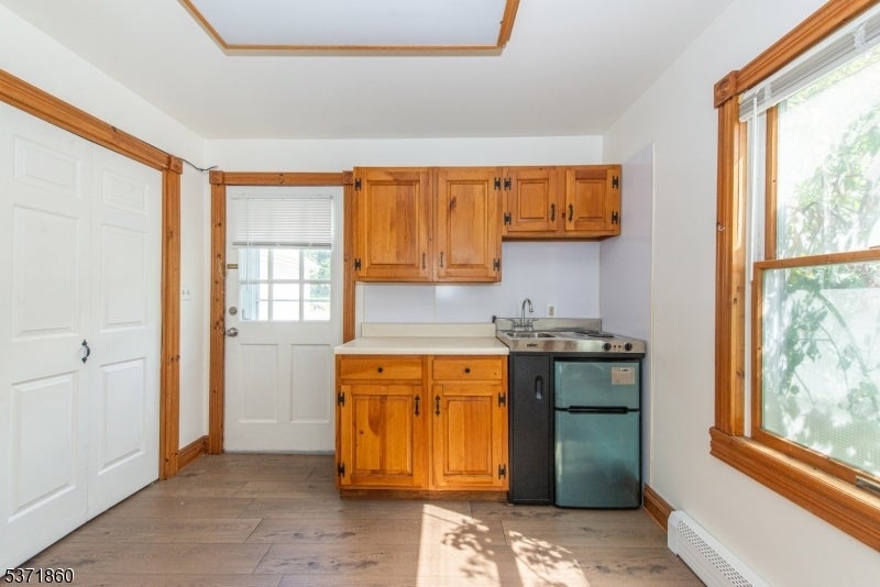 Welcome to this beautifully updated Victorian gem featuring 4 spacious bedrooms and 2.5 baths! Step inside to discover refinished hardwood floors throughout, adding warmth and charm to every room. The kitchen has been thoughtfully upgraded with elegant countertops and a stylish backsplash, perfect for cooking and entertaining. The lower level offers a convenient kitchenette with its own private entrance from the backyard, ideal for guests, or added flexibility. Unwind on the inviting front porch nestled beneath the shade of a mature tree, or enjoy easy outdoor access through the kitchen to the side yard. A 1-car garage is included with the rental plus ample additional parking. With modern updates throughout and a prime commuter-friendly location, this home is move-in ready and full of character. Come see all it has to offer!