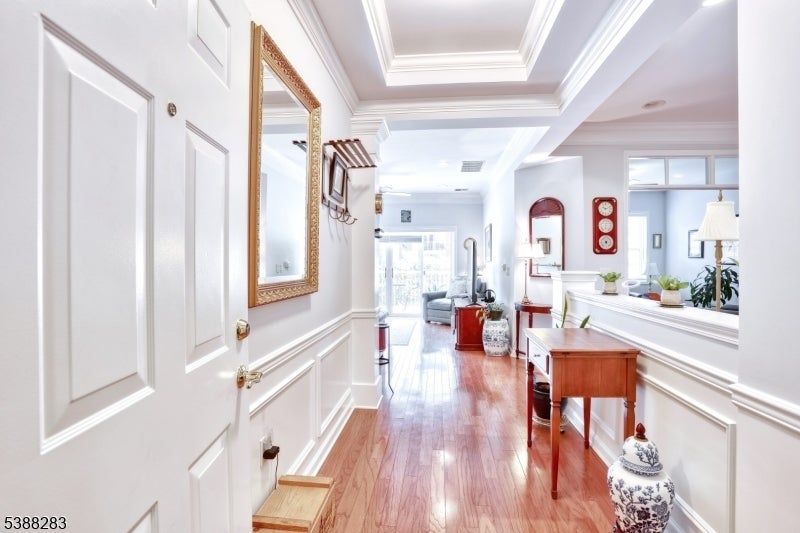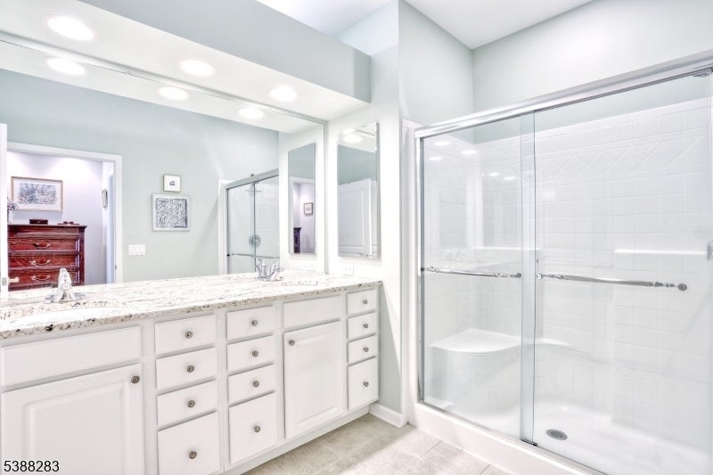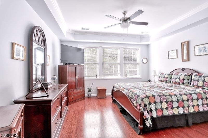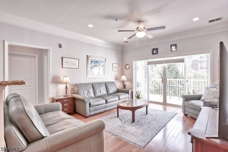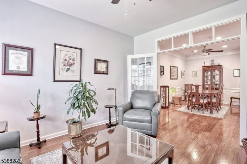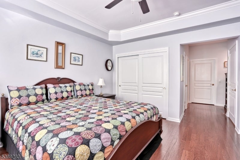 Wonderfully updated 1768 SF Colfax unit in Wanaque Reserve, a Del Webb active adult 55+ community, with those special touches that make it one-of-a-kind. This move-in ready home features hardwood floors throughout, a primary bedroom ensuite with full bath, tray ceiling and WIC, 2nd bedroom, FB, EIK with granite counters, stainless steel appliances & tile backsplash, LR, formal DR and den/home office with French doors. The LR sliding doors open to a tiled balcony with tree and greenery views. Amenities include a deeded underground parking spot, 24-hour security, ceiling fans in each room and granite counters in all bathrooms and laundry room. The 20,000 SF clubhouse has a cafe, ballroom, exercise room, theater, sauna, indoor and outdoor pools and more than 45 clubs & activities, which include the travel club (cruises, day trips, casino trips), tennis, pickleball, canasta, poker, golf, etc. WR offers a luxurious lifestyle for its residents, which has a focus on modern amenities, security and a sense of community. The recent renovation adds a fresh and updated living environment.