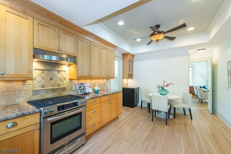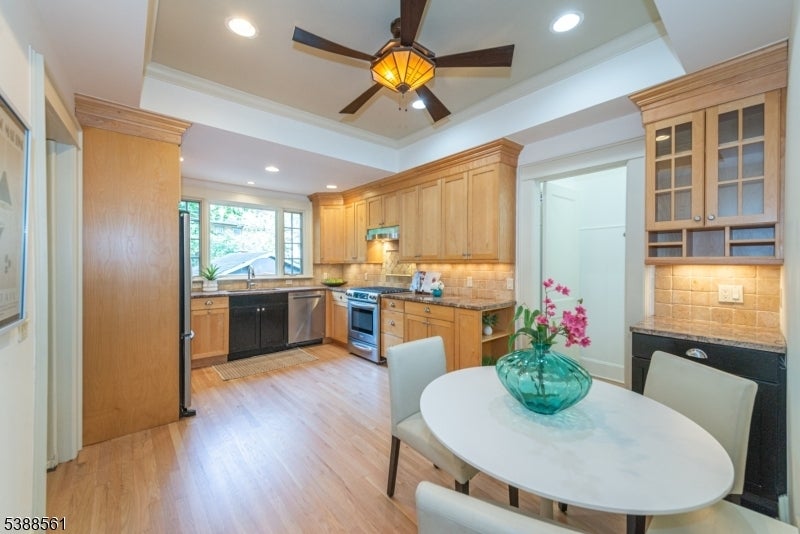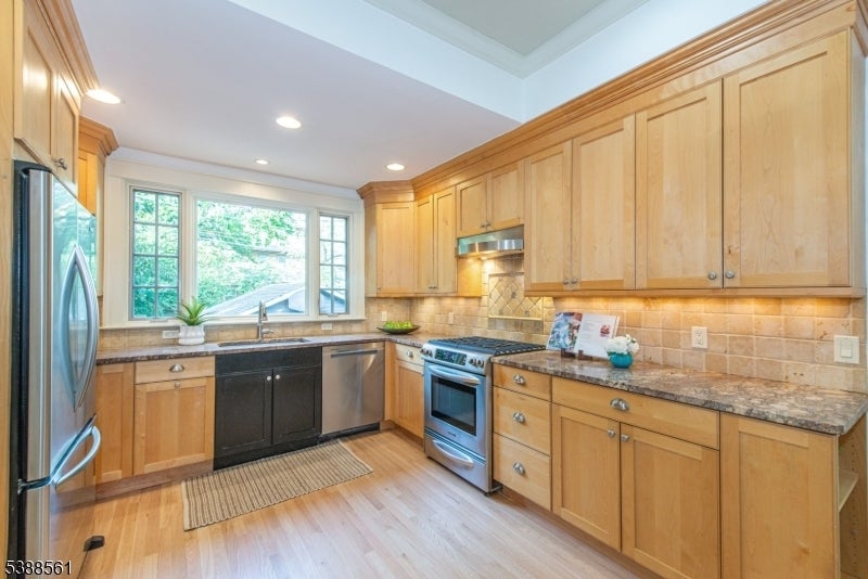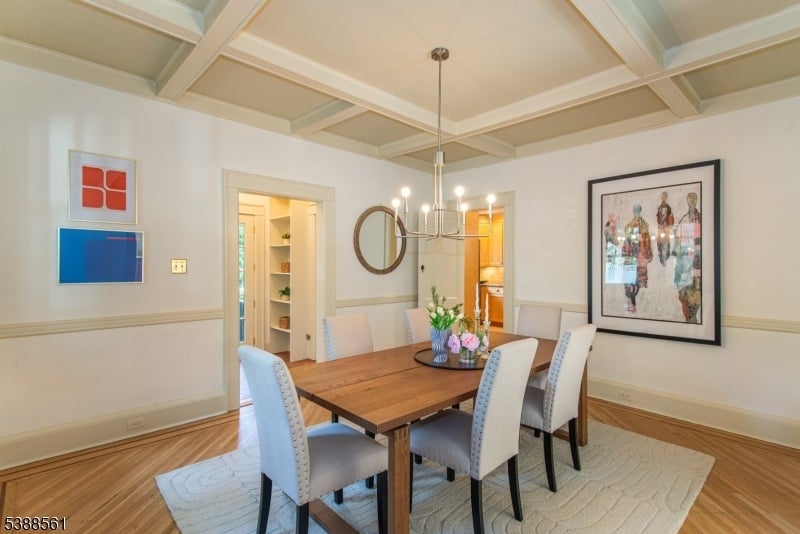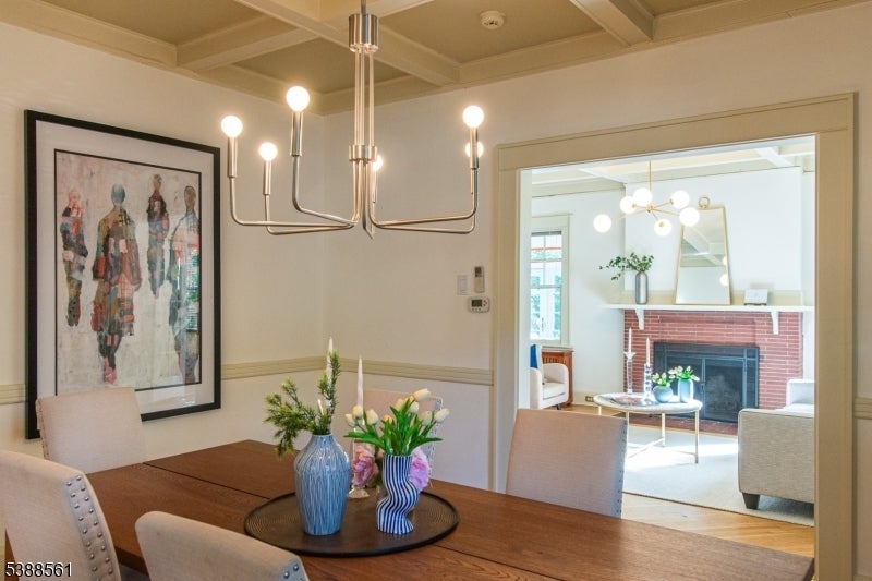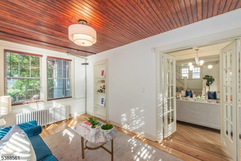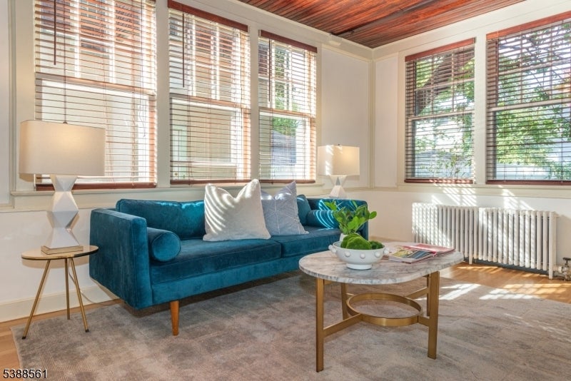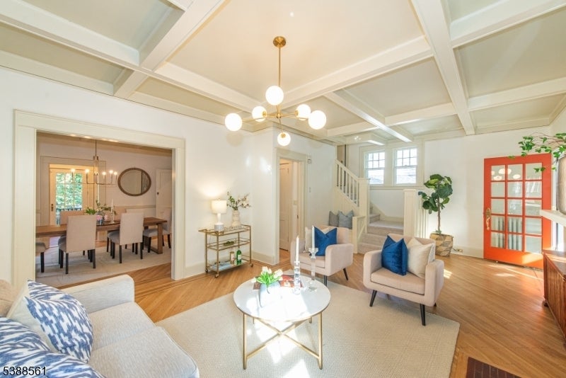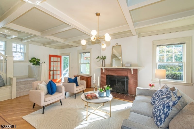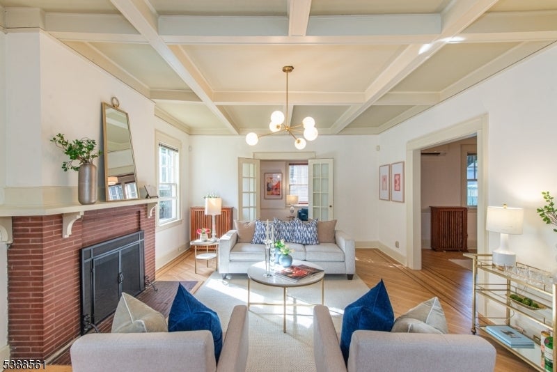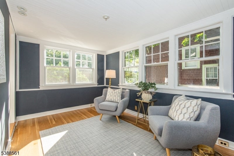 Welcome to 14 Prescott Ave! Three bright and airy floors plus finished basement create the space and flow you're looking for. Freshly painted with beautifully refinished hardwood floors throughout. The sunny front porch invites you into the warm and elegant living room with details like brick fireplace, deep moldings, and stunning high coffered ceilings- a nod to it's Craftsman heritage. The elegance continues into the formal dining room, opening to the updated eat-in kitchen. Four spacious bedrooms comprise the second floor. The third floor boasts two additional bedrooms - one being used as an office- a full bath and a large storage room. Bonus: first and second floors both have sunrooms so there's so much flex-space! The basement, with kitchenette and full bath, is a great family room and with it's separate entrance, could be the perfect in-law or guest suite! And the backyard... an oasis! Gather on the patio for dining, retreat to the firepit area and then enjoy a relaxing soak in the hot tub. This is your haven at the end of a busy day! A great house in a great neighborhood, Prescott boasts one of the longest running block parties in town! And the proximity to everything can't be beat: Brookdale Park is .3 miles down the block, and Watchung Plaza is a half a mile away, making your commute a breeze. Add central air, and a 2-car garage and you have the whole package!
