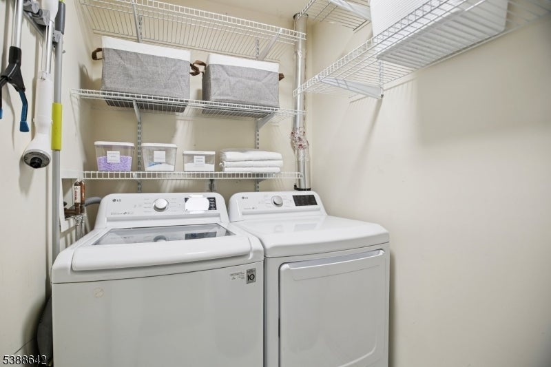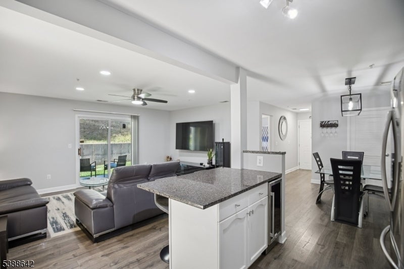 Meticulous, move-in ready second floor end unit condo featuring luxury vinyl flooring throughout main living areas. Open-concept living room, dining room and kitchen anchored around center island with built-in beverage refrigerator, granite countertops perfect for entertaining. Desirable split floor plan, offering a spacious primary suite, en-suite bath, WIC and a separate guest bedroom and full bath for privacy. . The laundry room includes includes washer/dryer with ample storage and an outdoor covered patio with an additional storage closet, This condo blends comfort, function, and modern finishes all in one! Easy access to RTES 22, 287,78 and NJ Transit.
