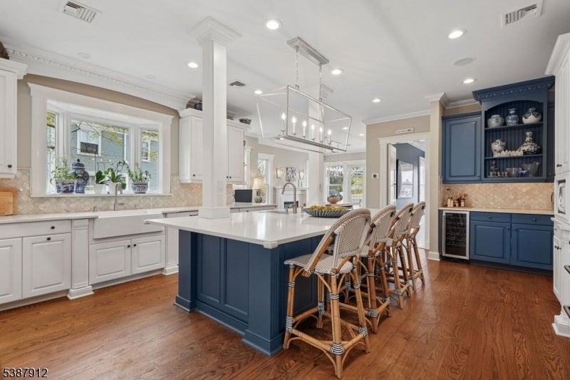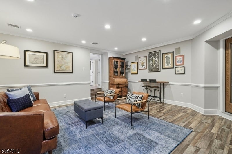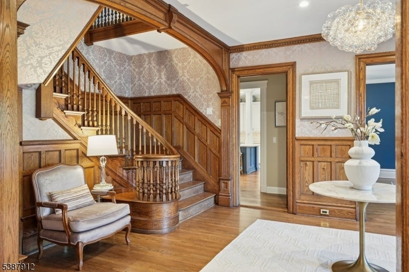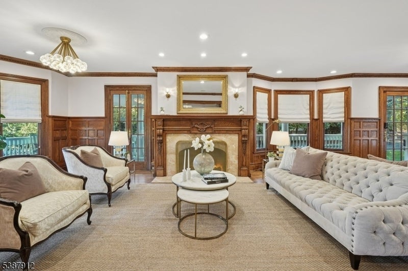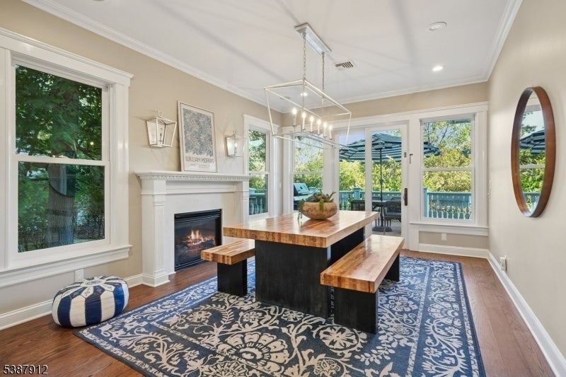 Move right into this warm, inviting home ideal for indoor and outdoor entertaining that blends everyday luxury with unparalleled convenience in the heart of Upper Montclair. Just 2 blocks to the NYC train, top dining, shops, and the Bellevue Theatre, this home offers city-like accessibility with neighborhood charm. Inside, the chef's kitchen is a true showpiece with a Wolf range, SubZero fridge, warming drawers, dual dishwashers, two sinks and a natural gas fireplace. A large center island and access to the gas-connected grill deck make this space perfect for both daily living and entertaining. The 1st floor also features a living room with exquisite millwork and a gas fireplace, a formal dining room with gas fireplace and seating for 12, a rotunda-style family room, and a powder room and mudroom for everyday ease. Upstairs, the luxurious primary suite awaits with an attached private office, marble bath and large walk-in closet. Four bedrooms - two with en suite baths - a hall bath, and luxe laundry rm complete the 2nd floor. The 3rd floor includes two more bedrooms, a full bath, and a bonus room. Versatile basement includes wine room, gym, hobby room, family room, a custom sensory gym (with home theater potential), and powder room. Enjoy the outdoors: mahogany wrap-around porch is perfect for relaxing, dine al fresco on the kitchen deck, roast s'mores on the bluestone patio. Invisible fence. 3-car garage with full 2nd fl ready for finishing. A true gem!