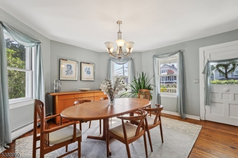 Charming Victorian set on a beautifully landscaped 0.29-acre level lot with mature flowering trees and a welcoming covered front porch. This home offers 3 bedrooms, 1.5 baths, and a thoughtful layout ideal for both everyday living and entertaining. The first floor showcases a spacious living room, a formal dining room, and a kitchen with a built-in dining table, along with a bright sunroom that floods the space with natural light and provides a cozy year-round retreat. Upstairs, the primary suite is highlighted by soaring ceilings, while two additional generously sized bedrooms comfortably fit queen beds. The full bath has been recently renovated, and a convenient half bath is located on the main level. The finished basement expands your living space with a lounge area, a separate den perfect for a home office or gym, and abundant storage. Outdoors, enjoy the serene yard, mature landscaping, and a detached 2-car garage. Conveniently located, this home blends timeless character with modern functionality a true gem inside and out.