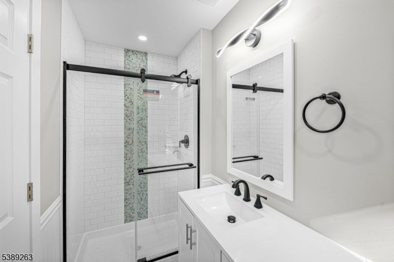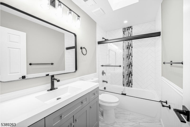 Located in one of the most sought after neighborhoods in Morris Twsp. Completely renovated 5-bedroom, 3-bath bi-level offering modern style and top-to-bottom updates. Bright living and dining rooms flow into a stunning new kitchen with quartz counters, soft-close cabinets, Frigidaire stainless appliances, and skylight. All baths are brand new with stylish finishes, glass shower doors, and bead board paneling. Freshly painted throughout with hardwood floors upstairs, wide-plank vinyl on the lower level, LED lighting, and an electric fireplace. Upgrades include new plumbing, electric, HVAC, tankless water heater, roof, gutters with guards, vinyl siding, and some new windows and doors. Oversized 3-car garage with new doors and openers. Outdoor highlights include new landscaping, paver walkway, bluestone steps and landing, new driveway with expanded area ideal for sport courts or pickleball. Additional details include raised panel accents, oversized moldings, laundry room, and expanded parking. A turn-key home with luxury finishes, generous space, and exceptional attention to detail throughout. Less than a mile to Burnham Park and less than 2mi. to the Morristown Green!