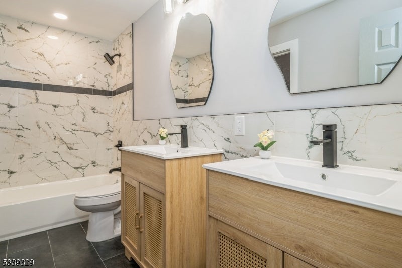 Welcome to this oversized split-level home in the heart of West Milford, boasting a modern feel with fully renovated interior and exterior. This five bedrooms and three full bathrooms warm and inviting house features functional layout with plenty of space to enjoy. The main level offers a bright and spacious living-dining area, and a well-appointed kitchen with quartz countertops and stainless steel appliances, including wine cooler, ideal for both everyday living and entertaining. Upstairs, you'll find three good-sized bedrooms and a full bath with double sinks. The ground level adds even more versatility, including foyer, large family room with a contemporary fireplace and gorgeous accent wall, two full bathrooms, another two bedrooms, laundry area, and direct access to the backyard. Further enhancing this home are two-zone central AC, brand new siding, windows, roof and beautiful floors. Enjoy your own private outdoor oasis with an in-ground pool, ideal for relaxing and having guests. This home offers comfort, charm, and beauty all in one!