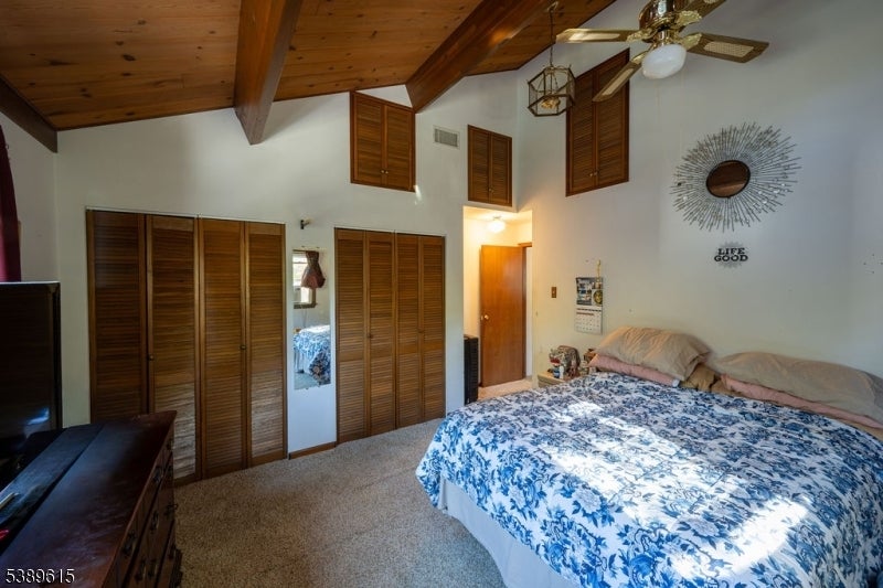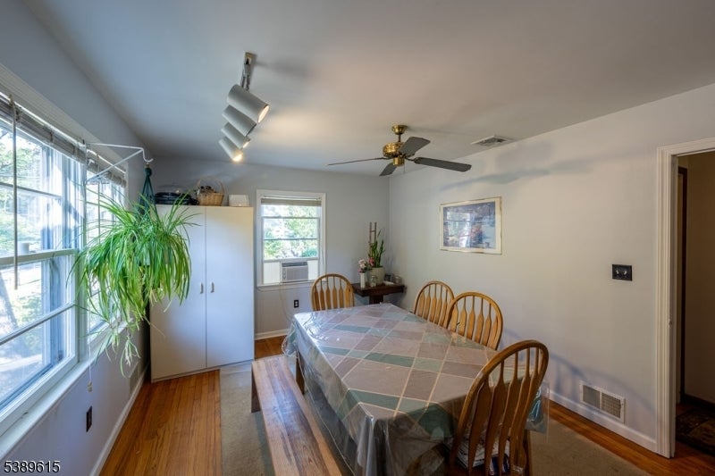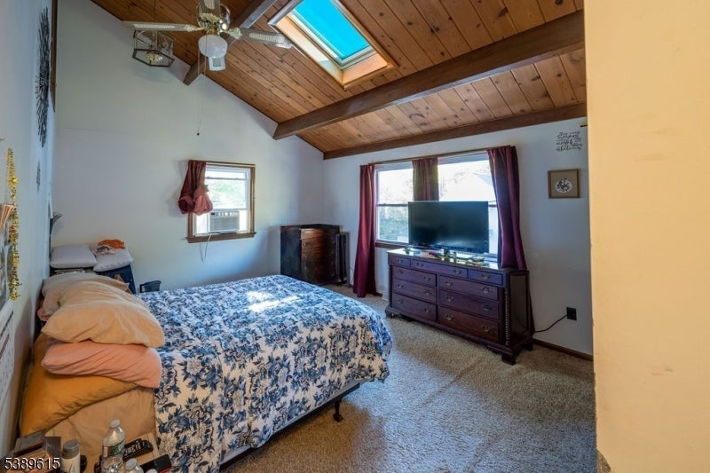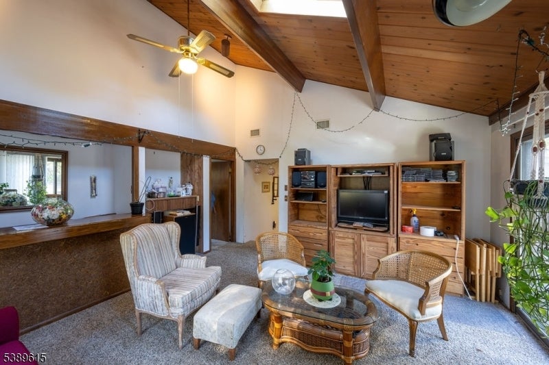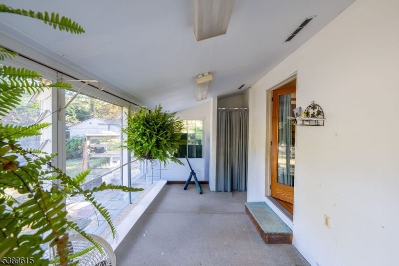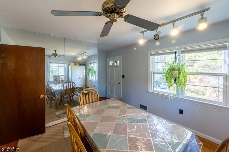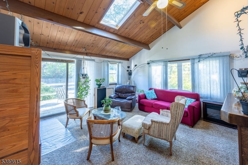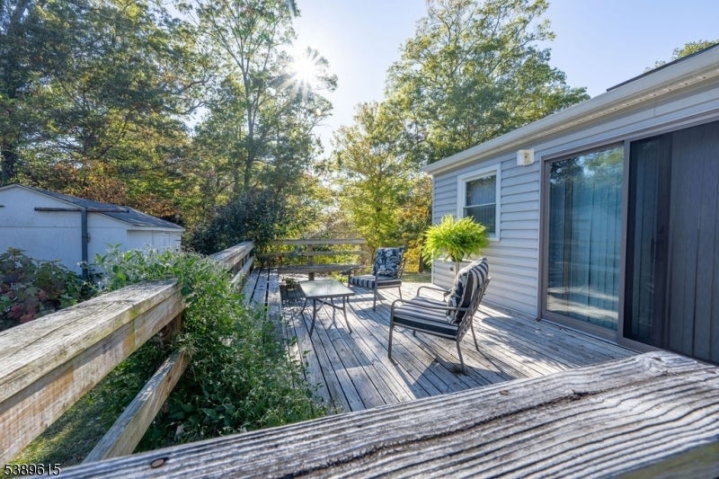 Welcome to 54 Reidy Place, a well-maintained single-family home offering comfort, functionality, and value in a desirable neighborhood. The kitchen features oak cabinets, black appliances, a pop-out window above the sink, ceiling fan, and side entry. The bathroom offers a glass stall shower, jetted Jacuzzi tub, and bi-fold closet. The dining room includes hardwood floors, a floor-to-ceiling mirror, ceiling fan, and entry door. Guest bedroom has hardwood floors, a double bifold closet, and ceiling fan. The hallway provides hardwood flooring, office space, and a large storage closet. A bright three-season room with floor-to-ceiling windows opens to the backyard, ideal for relaxing or plants. The living room features a vaulted beamed ceiling, skylight, ceiling fan, bar, built-in wall unit, and sliding doors to the deck. The master bedroom includes a vaulted beamed ceiling, skylight, ceiling fan, carpet, two double closets, and three overhead storage spaces. Basement has a multipurpose room (possible 3rd bedroom), utility room with washer/dryer, and garage with shelving and 10-ft ceiling. Additional features: floored attic with fan, central air, gas heat, septic, and well water. 10+ car driveway, 11x15 veg garden, rock wall & fire pit. Enjoy this bright, airy, sun filled house with a beautiful view of the mountains. Discover Browns Point and Hewitt State Park with lake views both within a 5-minute walk. One hour to NYC, near bus and Greenwood Lake.