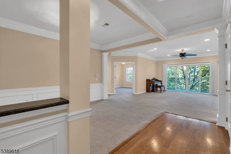 Welcome home to Somerset Run, one of Somerset's premier 55+ communities where every detail is designed for your next chapter. This TOP-FLOOR EMERALD END-UNIT offers approximately 200 SF more than interior models, with extra windows in the laundry room and second full bath, plus a sunny south-facing exposure. Enjoy 9' ceilings, crown molding, wainscoting, and recessed lighting throughout. The kitchen features granite countertops, GE black appliances, 42" modern cabinets, and a decorative backsplash. With two spacious bedrooms, two full baths, and a versatile den perfect for home office, guest space, or cozy retreat, the open layout is filled with natural light ideal for entertaining or relaxing in style. The primary ensuite includes a walk-in closet, double sink vanity, and step-in shower with built-in seat. Additional highlights include two underground parking spaces, a private 5x8 storage room on the same floor, and a covered balcony facing the front of the building. Residents enjoy a spectacular 25,000 SF clubhouse with indoor/outdoor pools, jacuzzi hot tub, locker room with shower stalls, hot sauna, fitness center, billiard/card rooms, tennis/pickleball courts, bocce courts, vibrant social clubs and a full-time lifestyle coordinator.HOA includes water, trash, snow removal, and lawn care. Approximate monthly cost (HOA and taxes) is $1,500. It is conveniently located near NJ Transit, Rt 287, hospitals, shopping, and dining. Come and check it for yourself.