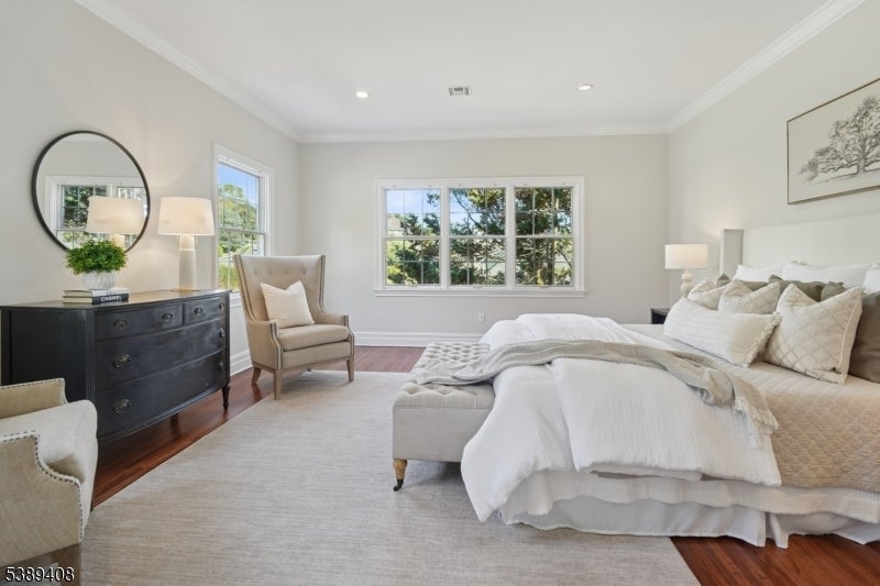 Welcome to the sought-after Rolling Hill neighborhood of Morris Township! This turnkey 5-bedroom, 4.5-bath Colonial offers timeless style on .79 acres. Sun-drenched rooms with gleaming hardwood floors flow seamlessly throughout, creating an inviting atmosphere. The living room and family room feature connecting wood-burning fireplaces perfect for cozy gatherings and relaxed evenings at home. The updated kitchen opens to both casual and formal living spaces, ideal for entertaining and everyday living. A freshly painted interior and exterior enhance its move-in-ready appeal. Upstairs, the generously sized bedrooms include a serene primary suite with a custom walk-in closet and beautifully appointed bath. The lower level offers incredible flexibility with a recreation area, workout space, and a full bathroom. Step outside to the expansive deck, perfect for relaxing or hosting gatherings. With a three-car garage, abundant storage throughout, and thoughtful updates, this home blends comfort and convenience. Located minutes from vibrant Morristown, top-rated schools, and major commuting routes, offering an easy commute to NYC and an exceptional lifestyle in one of Morris Township's most desirable neighborhoods.