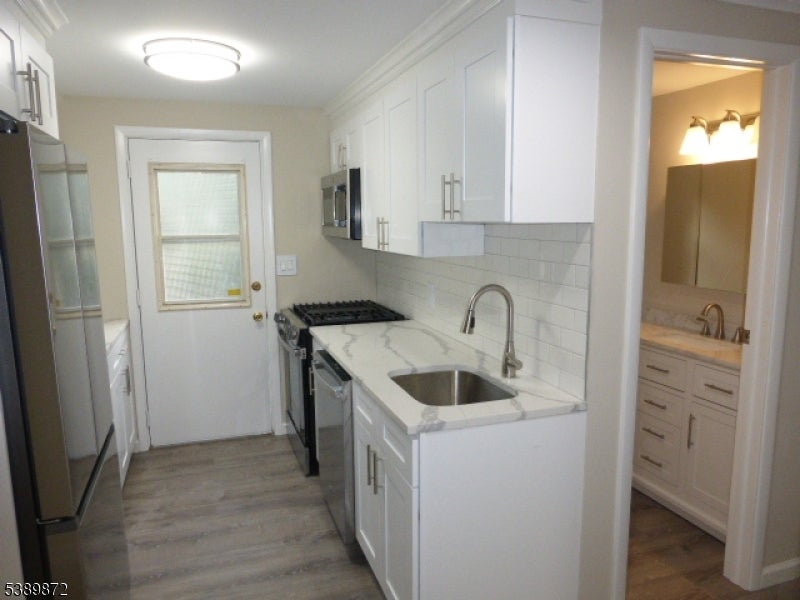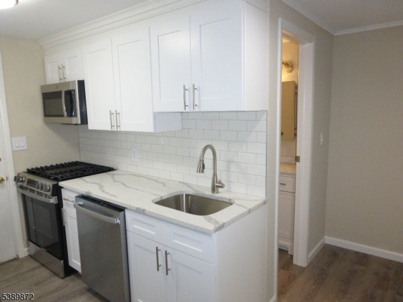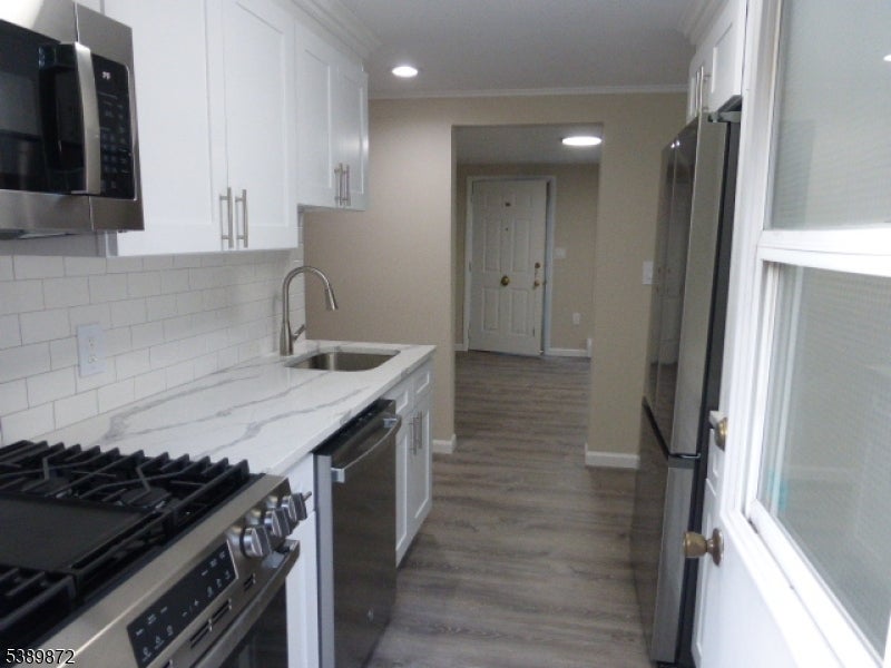 Be the first to live in this completely updated 2 bed, 1.5 bath in a multifamily home. Just finished with wood look laminate plank throughout. A garage is available for an additional $200 per month. There is parking for up to 2 cars in the shared driveway. The galley kitchen has stainless appliances including a dishwasher, french door fridge, microwave and 5 burner gas oven. It opens to both the dining and living rooms. The dining room flows to the sun-filled living room with a wall of windows to the front yard. The first floor has a powder room. The second floor has the guest bath with a stack washer and dryer. The primary bedroom has a walk-in closet and second double closet. Bedroom 2 has a double closet. The outdoor living is shared access to the front and back lawns. Just 10 Minutes to the Morristown train station and 1 block to an entrance to the Patriot's path system of trails. Dogs are negotiable, no cats. An NTN background check is required. Virtual and in-person tours are available.