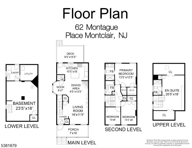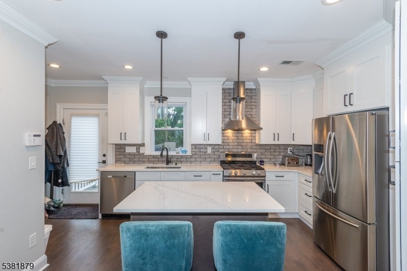 Gorgeous duplex in downtown Montclair. Fully renovated in 2018. Convenient to shopping and restaurants. Walk to NYC trains or bus. Loft like with high ceilings and open concept first floor layout ideal for entertaining. Kitchen design includes quartz counter-tops, stainless steel appliances and center island. Opens to dining and living room. Powder room and walkout to lovely rear deck complete the space. The second floor has a primary suite with 2 walk-in closets and full bath, second bedroom, third room for nursery or home office and a full bath in the hallway. The third floor consists of a spacious loft area that can be used as family room or guest room with a full bath. Full finished basement with separate storage and laundry rooms could be rec room or gym. 4 parking spots and 3 zone HVAC. Fabulous downtown location close to everything that vibrant Montclair has to offer. 62 is the left side of the duplex.