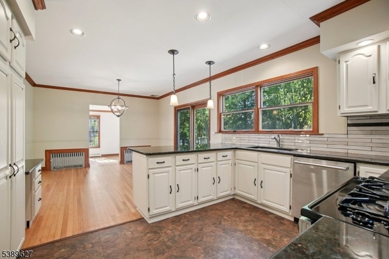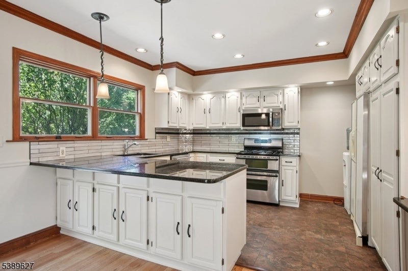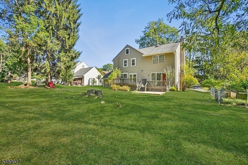 Located in Prestigious Livingston on a PRIVATE .25 Acres backing up to LUSH town property. Desirable layout of a Side Hall COLONIAL with 2100+ sq ft of Finished Living Space incl an important 2-STORY ADDITION. Welcoming Foyer flows to Formal Living Room centered around a large BAY Window and a GAS Fireplace. Open concept between White Kitchen with Breakfast Bar and Spacious Dining Room spills out to a perfect deck - perfect for entertaining. Impressive NATURALLY BRIGHT 425+ Sq ft Family Room ADDITION with Wood Burning Fireplace, perfect for large gatherings! Upstairs hosts HIGH-CEILING Master Suite ADDITION with FULL Bath, Dressing Area + 3 Additional Bedrooms and Full Bath. Great Basement for storage. NYC Bus down the block. Enjoy all that Livingston has to offer!