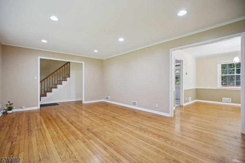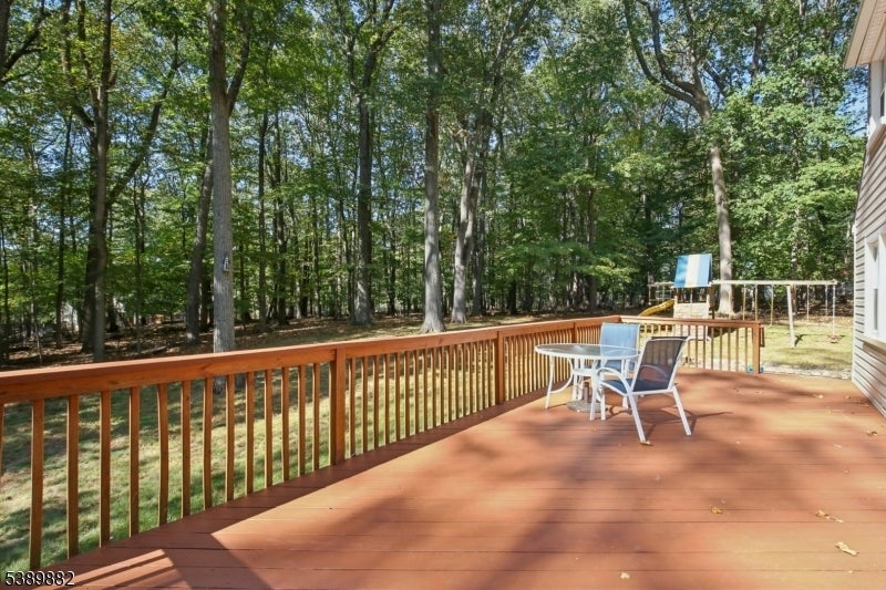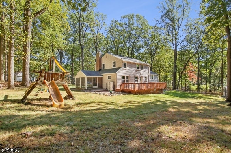 Welcome to this large 5 bedrooms & 3.1 bath Coloniel Split level house situated on a spacious level 1.33 acre wooded lot with plenty of privacy and quiet space. Updated and bright eat-in kitchen with granite counters and SS appliances with a walkout door to the deck. Large sun splashed livingroom includes a wood burning fireplace and recessed lighting. Large formal dinning room walkout to screened porch. Two bedrooms and main bath are on the 2nd level which is only 4-step stair from the first level. Hardwood floors on the first and second levels. The Third floor is also hardwood floor under the Carpet. Basement walkout to two car garage and workshop. Large deck oversees level backyard and natural wood for hosting large gatherings. Top school ratings, easy access to majoy highways, near train station to NYC and bus stop. convenient location... Chimney & fireplace being sold "as is". no known issues.