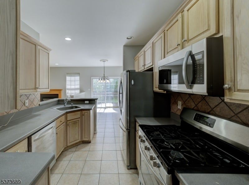 Great location in the community on a quiet cul de sac - North facing - Upgraded Brittany unit. Open floor plan with wood floors on both levels & recessed lights. Kitchen with well laid out counter space & cabinets, tile back splash & SS appliances - Separate breakfast area - Sliders to private deck & yard. Family room with gas fireplace. Powder room & inside access from garage. Master bedroom with en suite bath - double sinks, soaking tub, shower & walk in closet. Second floor laundry, 2 other spacious bedrooms & main bath. Fully Finished basement with Laminate floors & a full bath. Versatile space can function as media / game room and office. Plenty of Storage too. 1 Car garage & assigned parking spot. Convenient & numerous visitors parking nearby. Newer hot water heater (2020) gas heat (2024) & central air ( 2025). Commuters dream. Walk to NY bus or shopping. Complex has outdoor pool & club house - snow removal included. Quick closing possible.