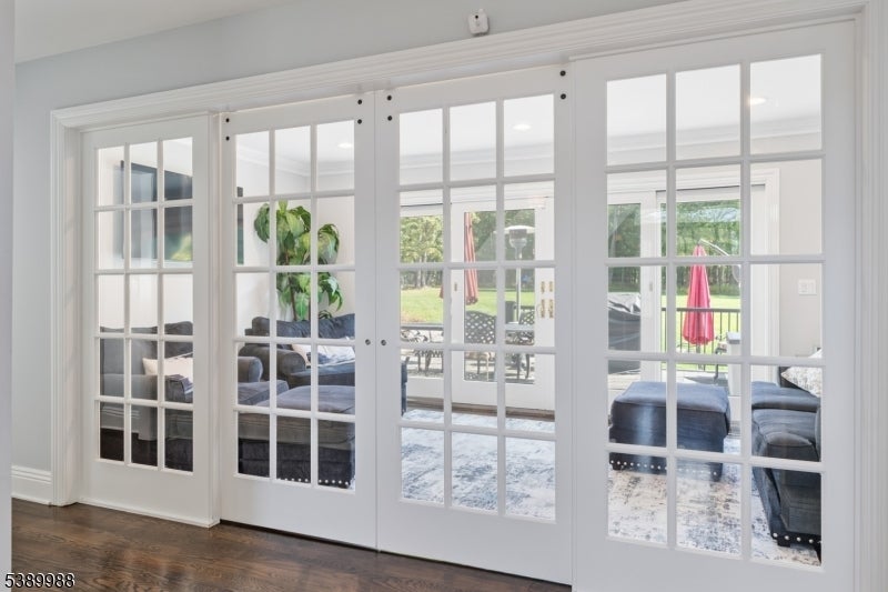 COME HOME TO 7 COVENTRY ROAD, a 5 Bedroom, 5.1 Bath perfectly renovated architectural dream. Following a major 2017 transformation, this residence showcases splendid design with intentional functionality. Majestic 2-story Entry Foyer welcomes with soaring vaulted ceiling, tremendous light, and gorgeous hardwood floors. Luminous Great Room with exposed beam and dramatic 2-sided fireplace wall lends well for both large and intimate gatherings. 1st Level also houses 2 Home Offices, perfect for today's work-from-home lifestyle. Well-appointed Chef's Kitchen, boasting white cabinetry with radiant under-lighting, quartz countertops, geometric glass accents, SS appliances, center island, generous Butler's Pantry, and easy-access to your own private paradise - a beautiful bluestone patio and expansive, meticulously maintained Backyard also accessible from cozy adjacent Sunroom. Upstairs, 3 sizable Bedrooms await, including one Ensuite with attractive granite vanity. Your Primary Ensuite Bedroom is its own private sanctuary on the 3rd Level, with 2 walk-in closets, spacious Bathroom, Laundry Room PLUS an inviting Sitting Room with its own covered balcony and Backyard view! Amazing storage solutions throughout keep everything organized. Lower Level offers 5th Bedroom with separate entrance, 2 Full Baths (1 with sauna), Mudroom, plus 2 huge Rec Rooms. Set on close to an acre, bordering preserved land/forest, great location, and comfortable luxury at its best!