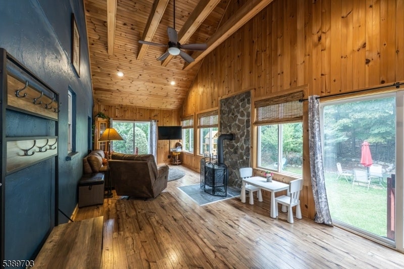 Charming lake style home with tons of character and incredible lake views from the covered front porch! This fantastic home is located on a quiet street in a great neighborhood! The first floor offers a large bedroom with gleaming hardwood floors and a spacious eat in kitchen with granite counter tops, tile backsplash and stainless steel appliances! There is also a small den that leads into an incredible family room with vaulted ceilings, warm wood accents and a wood burning stove that lets in tons of natural light and has access to the open and level backyard! The first floor also offers a second bedroom and a full bath with tub-shower! Upstairs there is the third bedroom and an additional full bath! The basement is spacious and unfinished and connects to the 1 car garage under the home accessible from the driveway! Don't miss out on this incredible opportunity to own this amazing move-in-ready home!